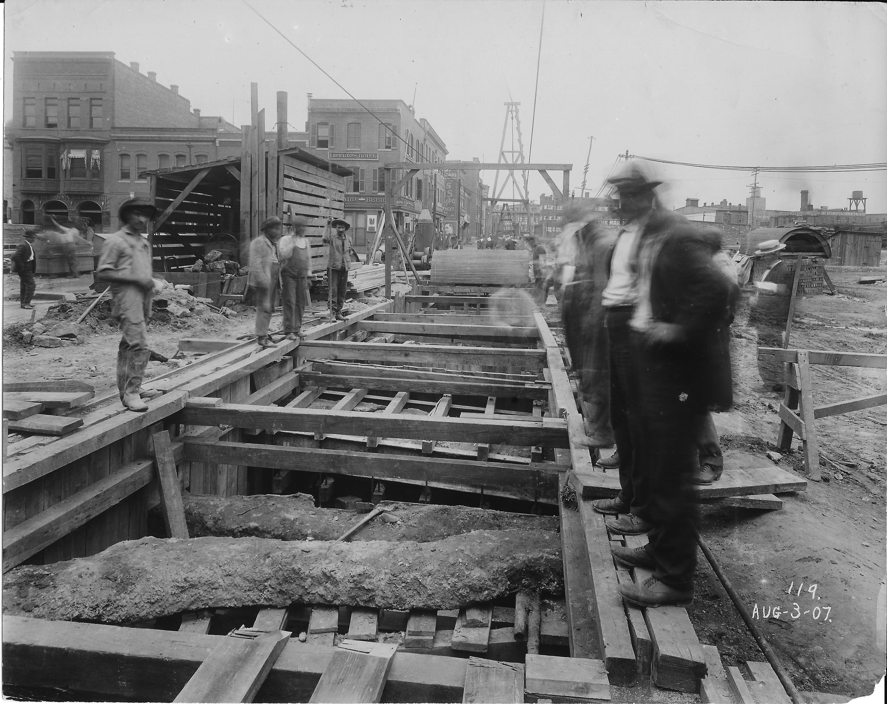 Section #1 Center Market Place showing supports to conduits in foreground and supports to large conduits leading to United (?) & Electric company Power House.
