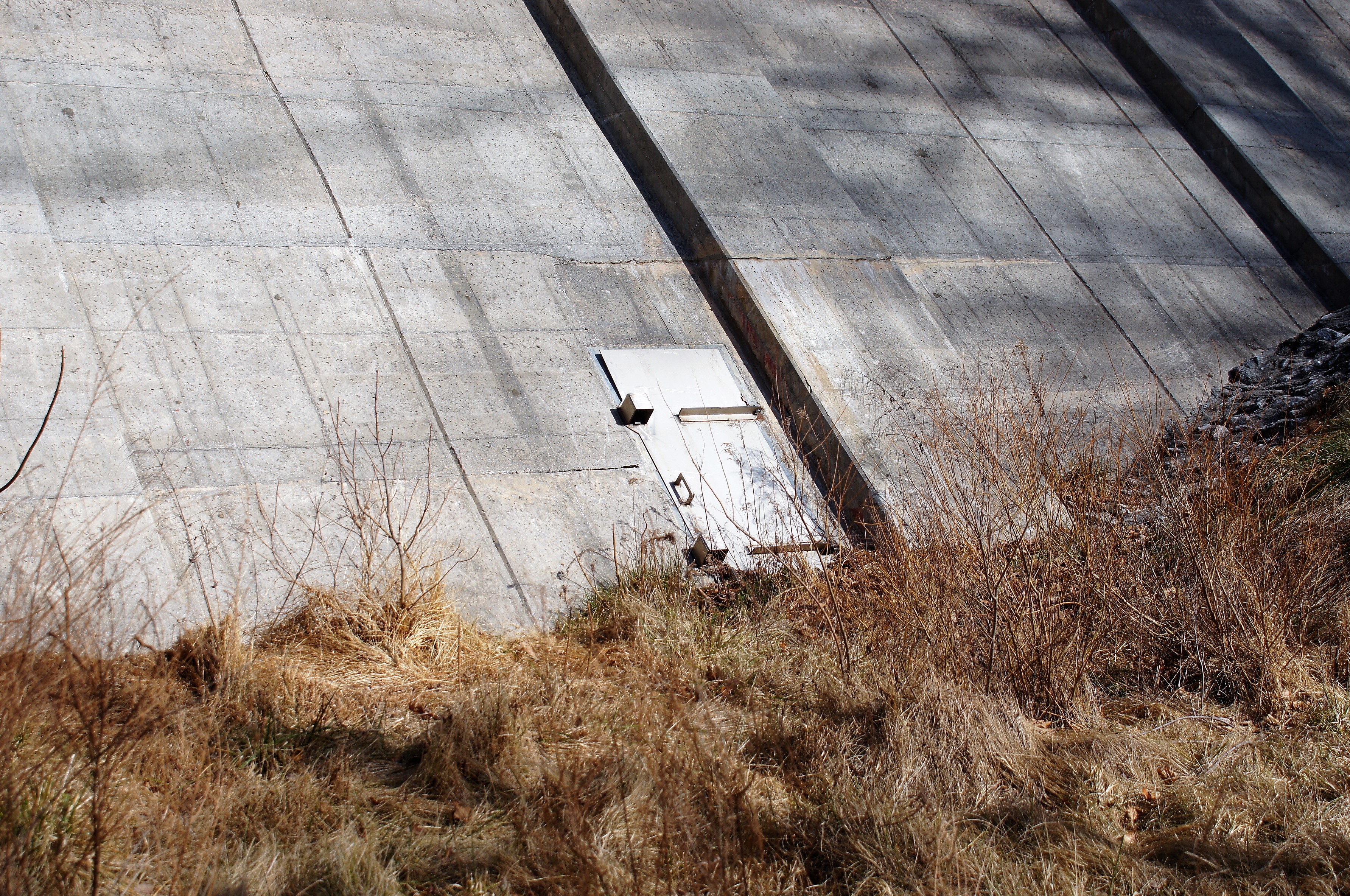 Now it is elevated by the placement of this pipe. This pipe is covered in dirt. I’m still not sure why they installed this pipe into the face of the dam??? I have the drawings and project photos, but nothing to say why?