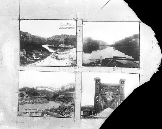 Next up more photos being photographed. Two of my favorites on this plate – The original photo of the town of Warren before flooding (A lot of historical societies use this photo and don’t give credit to the City for using it. I guess because it has been used so many times in various newsletters and publications, they consider it public domain) And I like the Paper Mill Bridge with the covered bridge underneath.