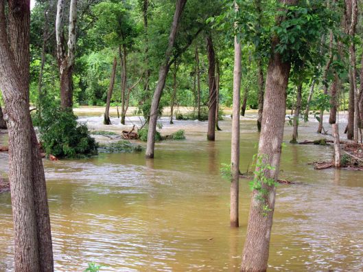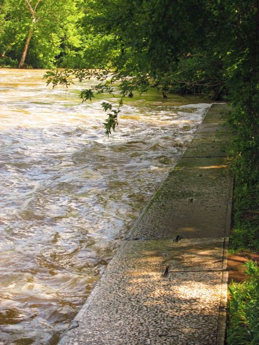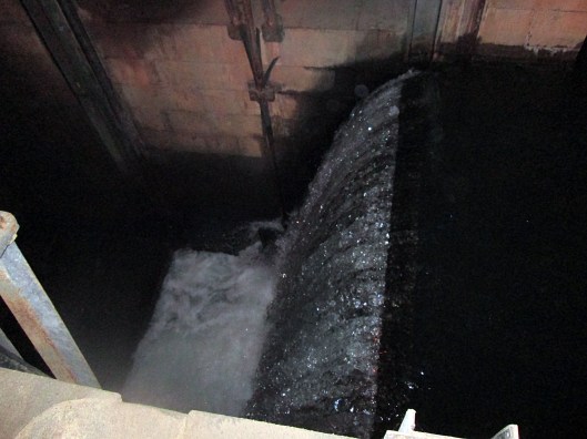 A look in the gate house on the lake. This flow is normally about 11-13 mgd. Today it is at 21 mgd. And for those of you who do not know – no, this is not drinking water going to waste. The Montebello Lake is where the impurities from the treatment plant settle out along with the dissipation of the chlorine before it goes into Herring Run.