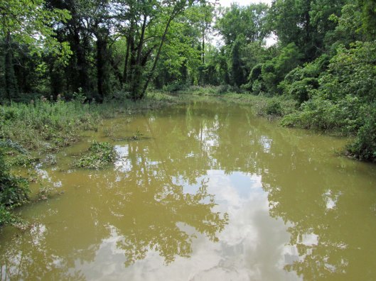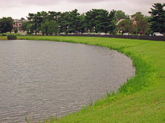 The never-ending rains are here so I decided to check out the water works and see what is going on. Montebello Lake has risen quite a bit. If the grounds crew does not cut all the way to the water line, the phragmites will once again encroach the banks.