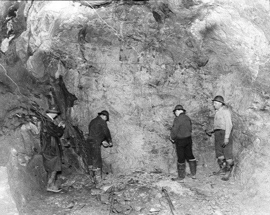 (Note: Upon further research, I found that the picture above was not from the tunnel explosion, but rather a progress photo from 1938 of the heading being loaded and wired for blasting. Unfortunately, the tunnel explosion photos are missing from the collection.)