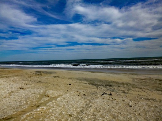 Glad I didn’t take my good camera – I’ve ruined two of them over the years from sand getting into them. The sand was stinging our faces. Looking up the beach.
