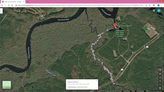 What a great day to take a break from doing ‘stuff’! Loaded the kayaks onto the truck and then headed to Shad Landing at the Pocomoke River State Park. Weatherman was calling for 80+ degrees. We did want to do an Assateague Island trip but the wind gust were to be 10-15mph. For our first time out this season we thought a more peaceful, relaxing trip would be better. Here is our map. Not a long distance trip but a fun one of almost 3 miles and 2-1/2 hours.