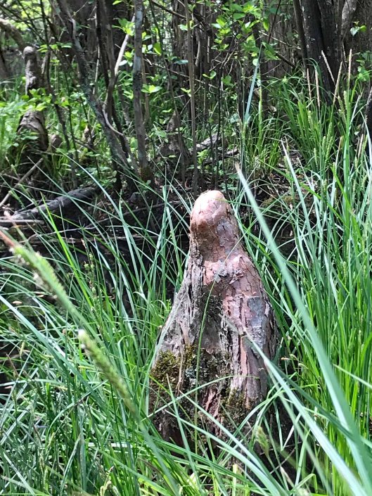 We did not see much wildlife, just some signs. Here it looks like a beaver wasn’t paying attention to what had already been gnawed upon.