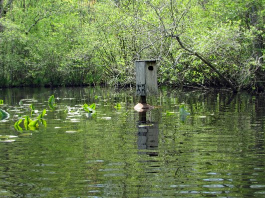 The water was high enough to take away the protection of the metal cones that protect the birds from predators. Also, the lily pads had come up, only to be submerged.