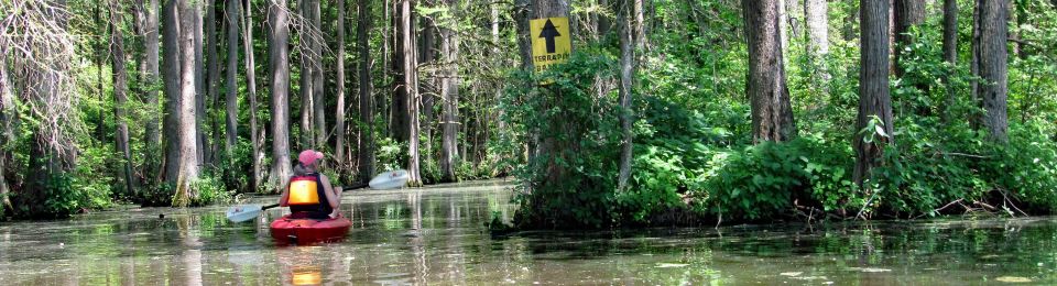 First kayak adventure of the season at Delaware’s Trap Pond State Park in Delaware. It usually costs us $8 to park at the boat launch. This year we decided to go ahead and get a yearly, out-of-state permit (for seniors) since we like hiking, biking and kayaking there. The permit covers all state parks in Delaware except Fort Delaware State Park and Pea Patch Island.