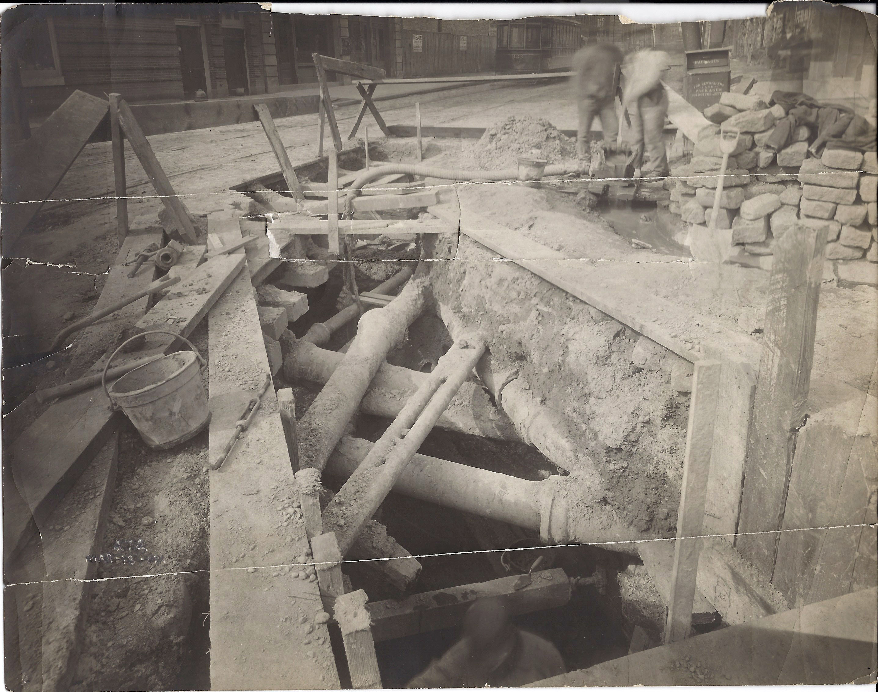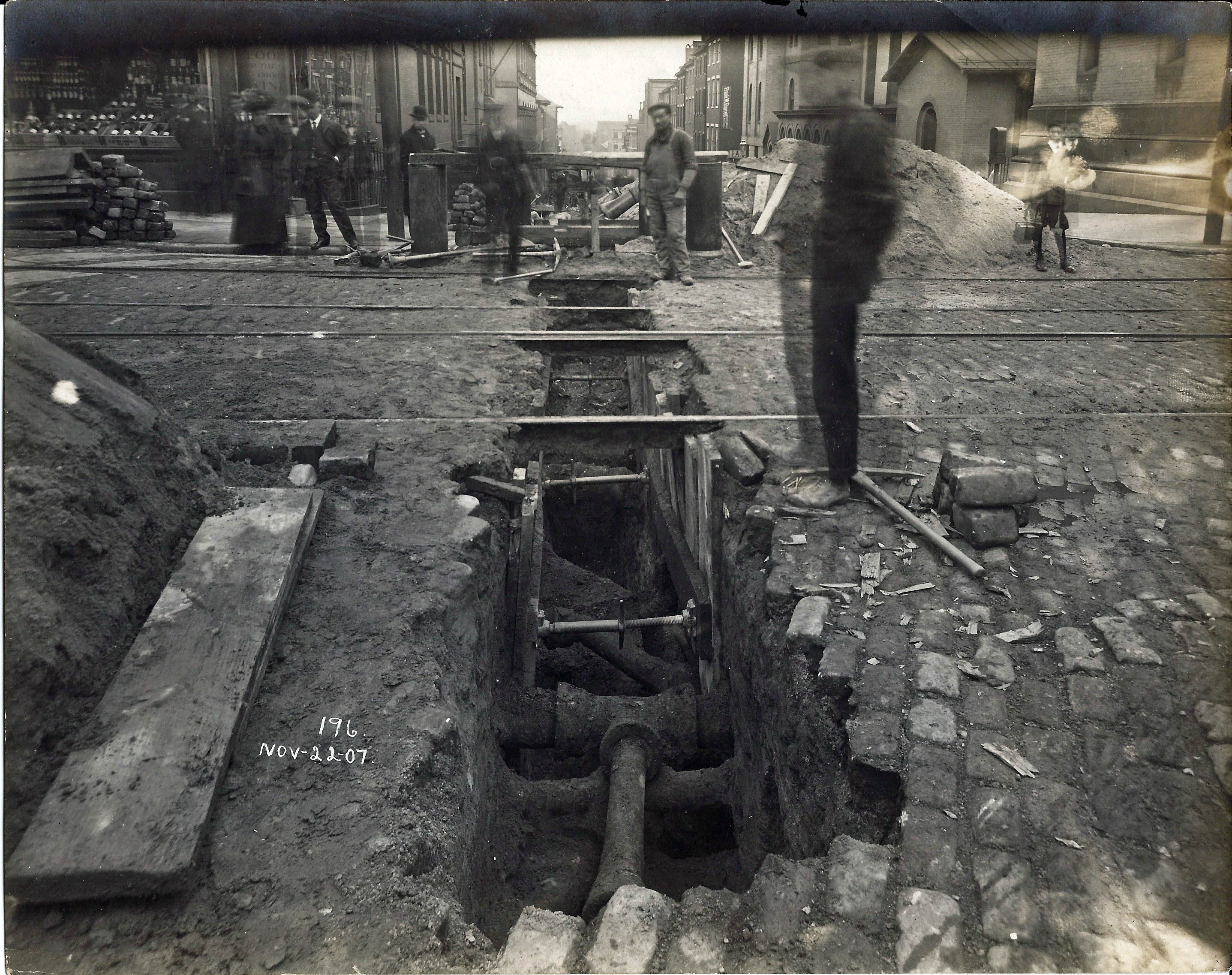 The City being the City and always trying to save money started using a lead substitute called Leadite. They also used a sealant over the lead called Hyrolene-B as seen in this 1907 photo.