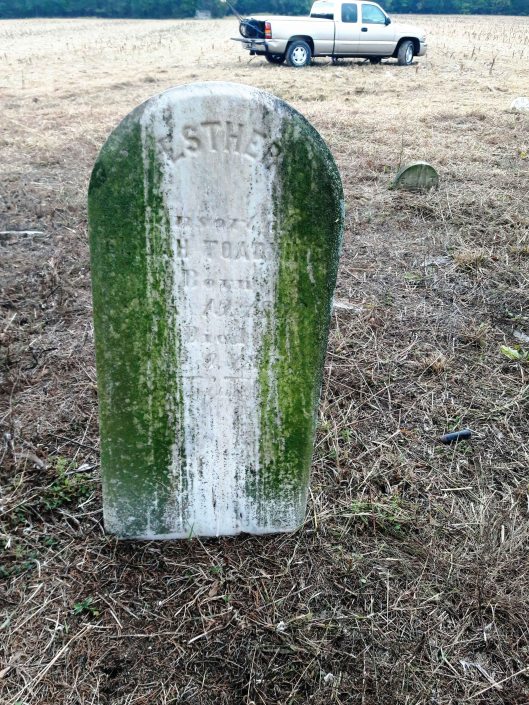 So, a week later we head to find the Pusey Cemetery. As we head down the road Kathy sees some headstones in the woods. This one is a private cemetery called Bounds-McAllen Cemetery.