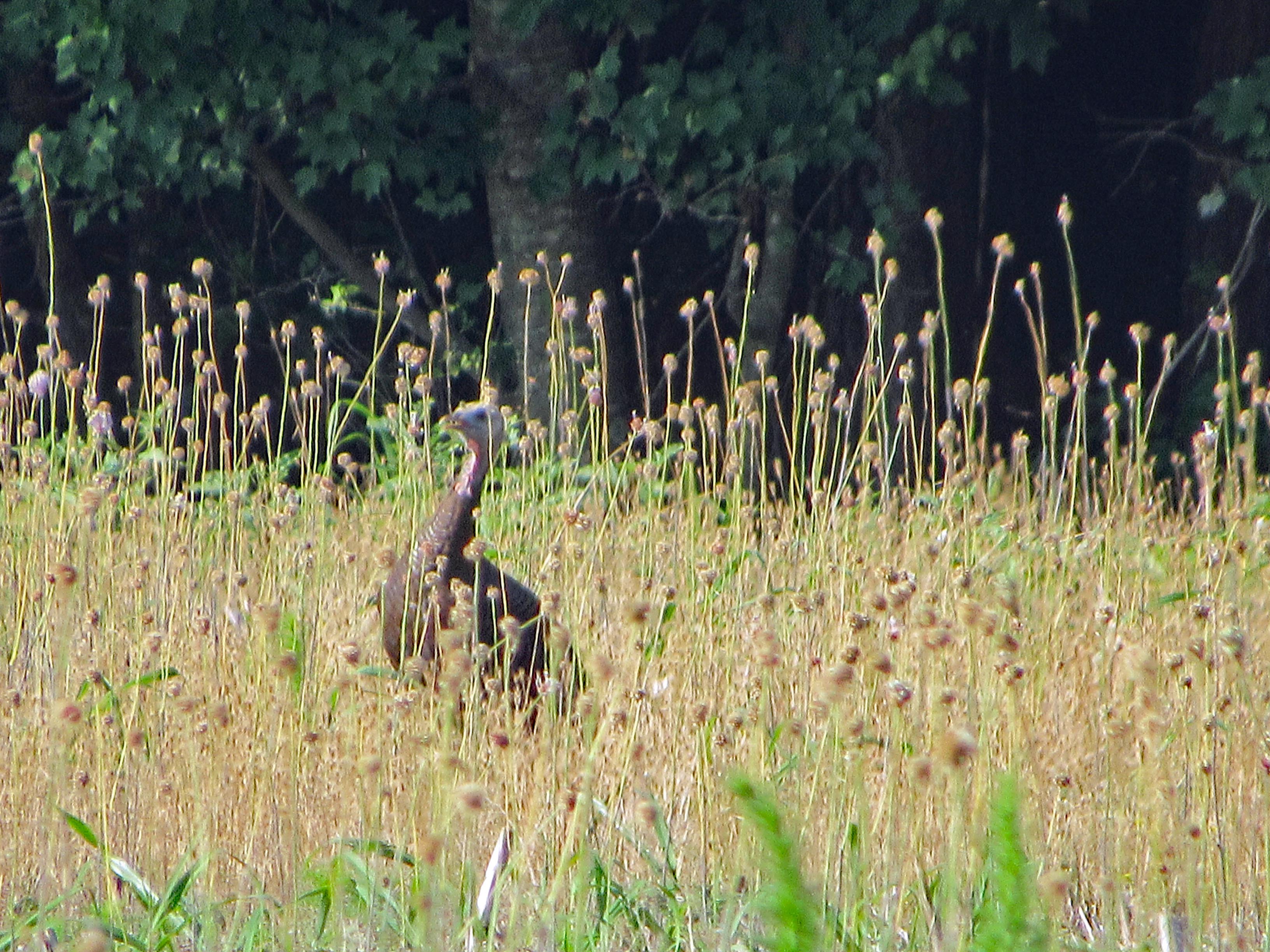 At Kathy’s parents house, a bunch of turkeys were in the field.