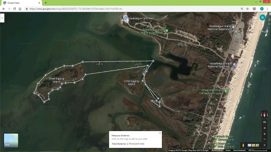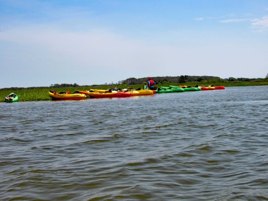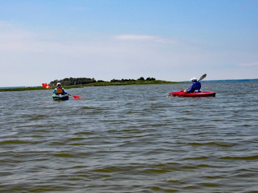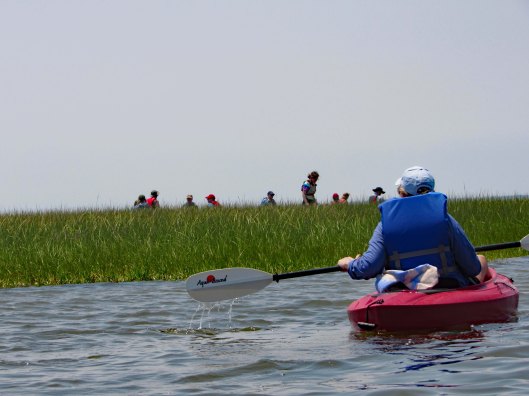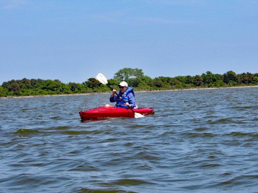 Now we head across the open water to Great Egging Island. Gail trying her hand at paddling in reverse.