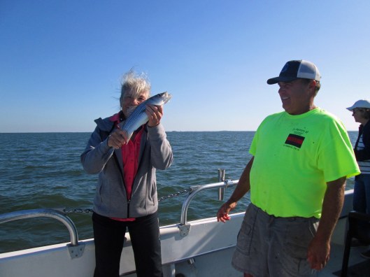 Gail did good, catching quite a few trout. but Kathy out did us all with her 19-1/2″ Rockfish.