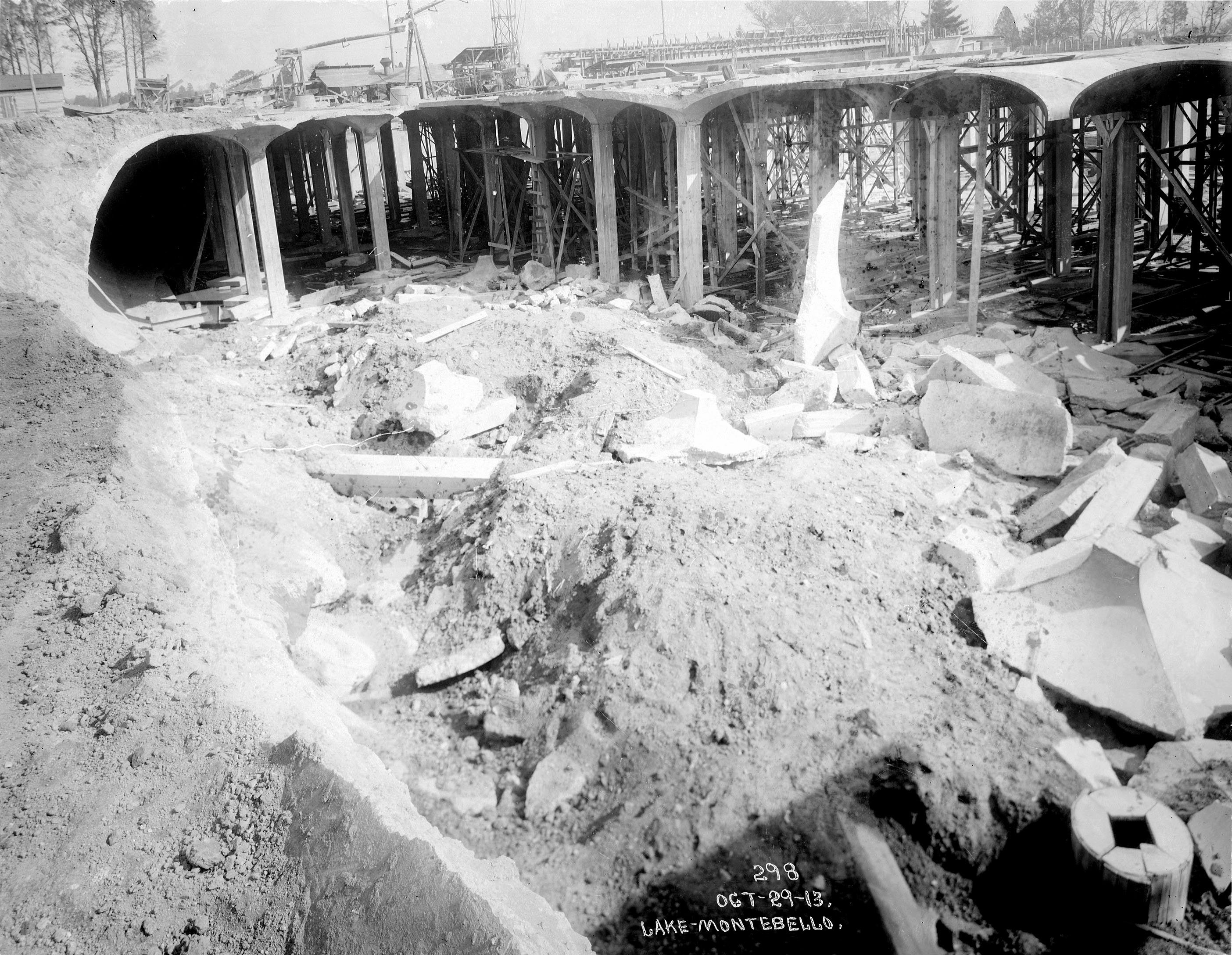 The majority of the structure collapsed. The contractor needed to start over and by late 1914, he was almost done. Because of other related projects, the water works would not be completed until 1915.