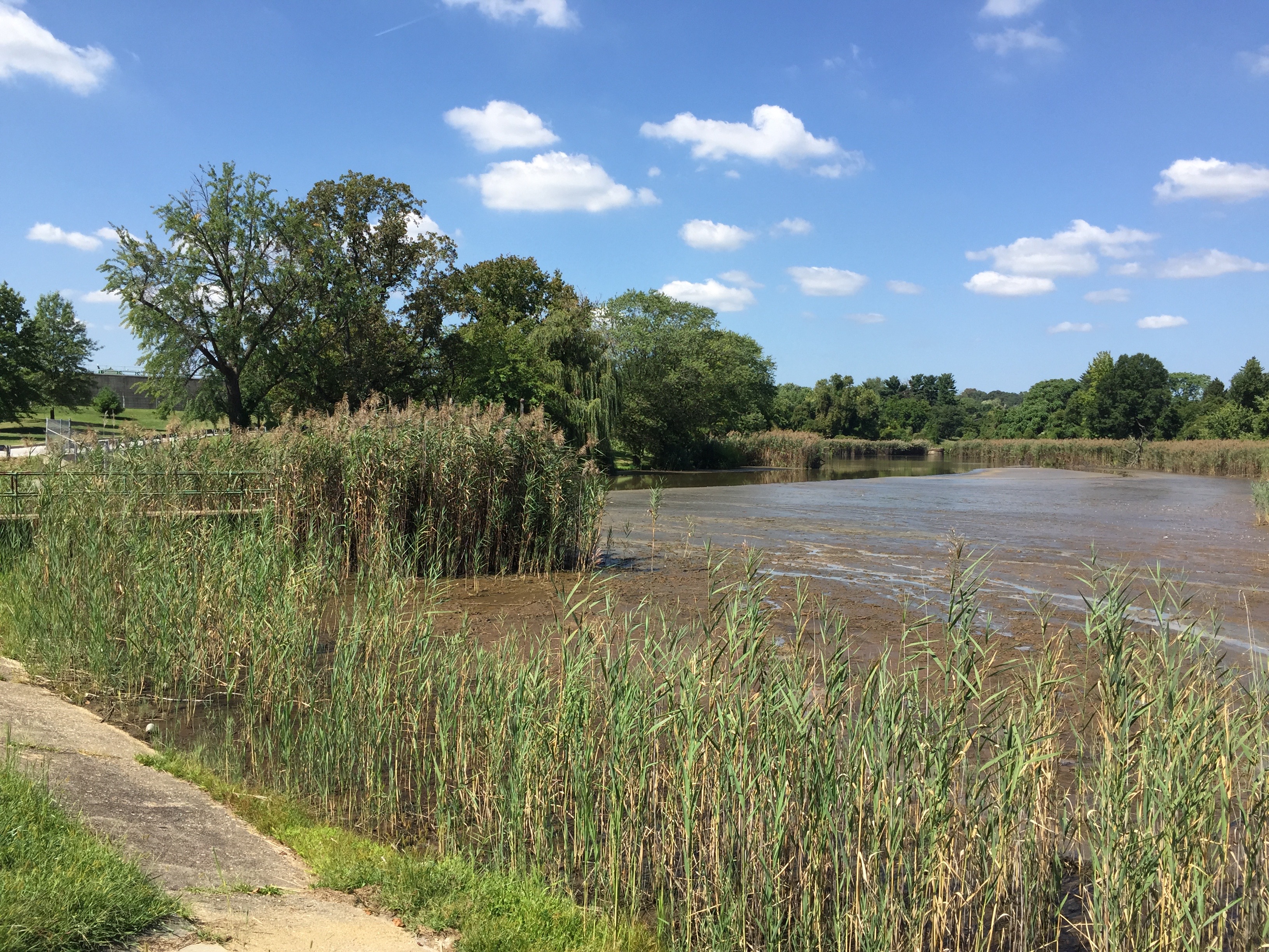 This is the view across the lake towards the gate house. The brown you see in the water is sludge build-up. This lake was dredged in 2005-2007, but the contractors only did a small portion of the smaller lake where most plant sludge is collected before flowing to this lake. That lake will soon be dredged. (It should be every 3-5 years, with the big lake not needing to be done for 30 years)