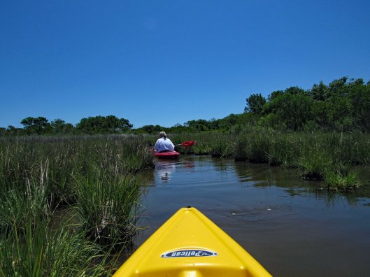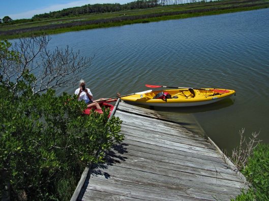 Return trip to Assateague State Park for some more kayaking. Paddled a little over 2-1/2 miles and were out there for a few hours. Nice day with a slight breeze, enough to keep the bugs off. We put in at the Old Ferry Landing. A few people there. By the time we returned, there were a lot more people. We pretty much went to a couple isolated waterways, opting not to head out on open water to the islands. Mostly hugged the shoreline.