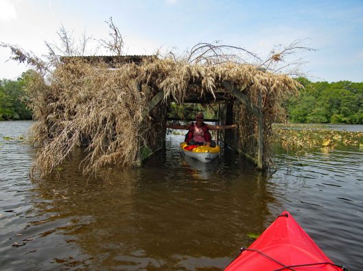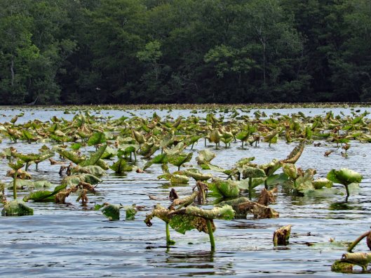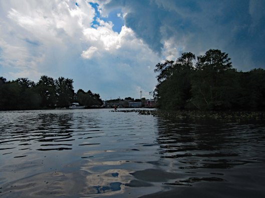 Lots of lily pads floating about. Tried to avoid and paddle around.