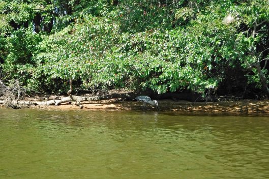 Heading up stream. Fisher-people to the right, casting in our direction.