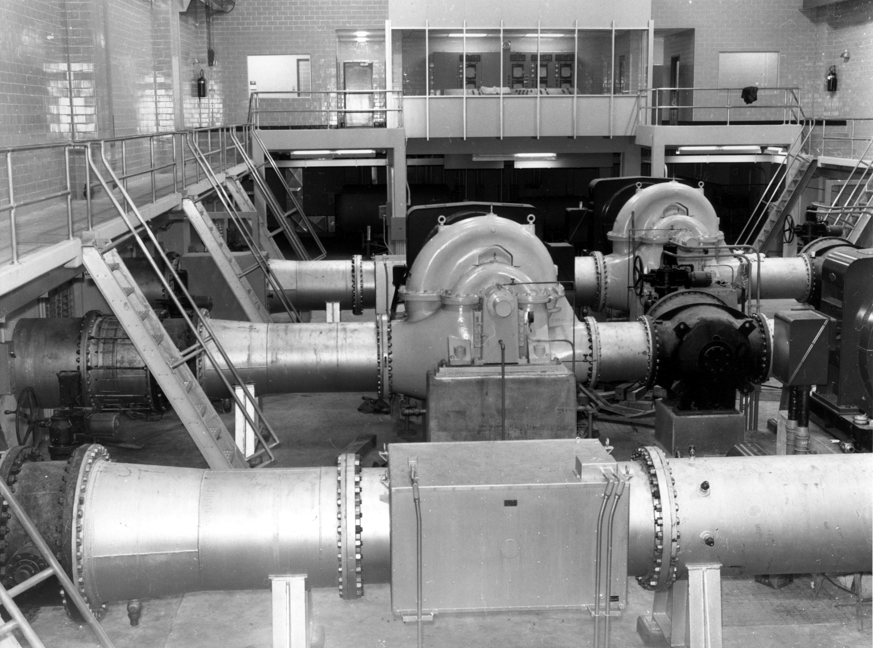 The pumps at Deer Creek. Because of the variation in the elevation of the pipe line, the water will not flow by gravity, so pumps are used.