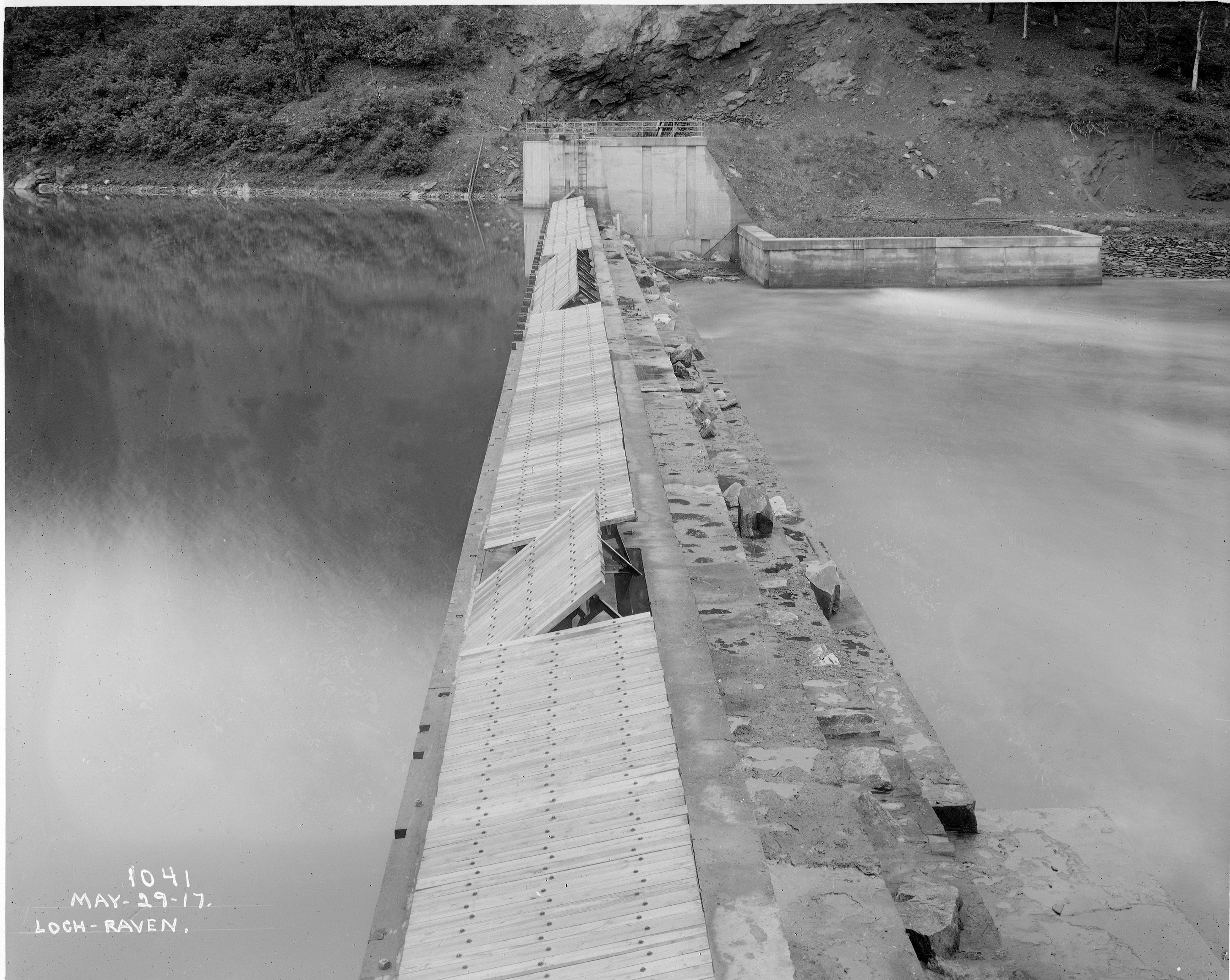 1911 – Due to drought, wooden flash boards were placed at the dam at Loch Raven and at the Waste Weirs at Lake Montebello and Lake Clifton in order to increase the storage capacity at each location by three to six feet in depth. (This is prior to the new dam being built in 1915)