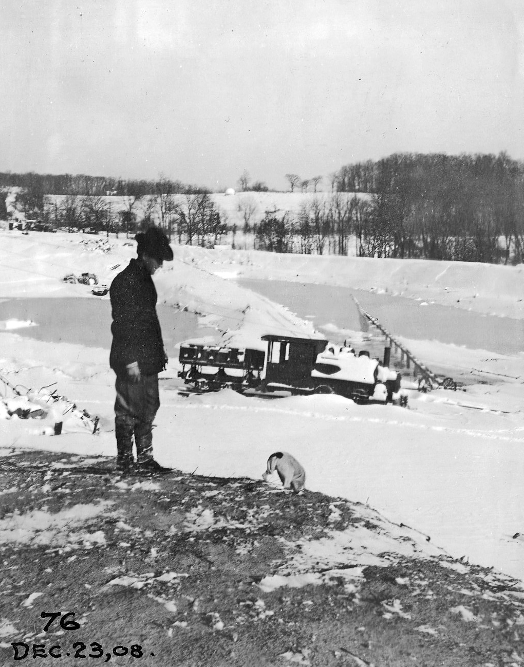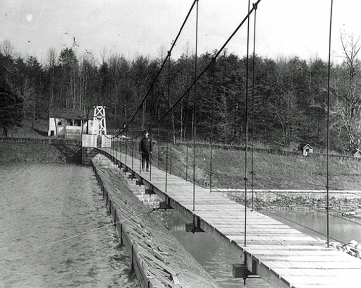 The top photo shows the baffle boards on the original 1881 dam. The second photo shows that up until 1917 they still used the boards, this time on the second dam.