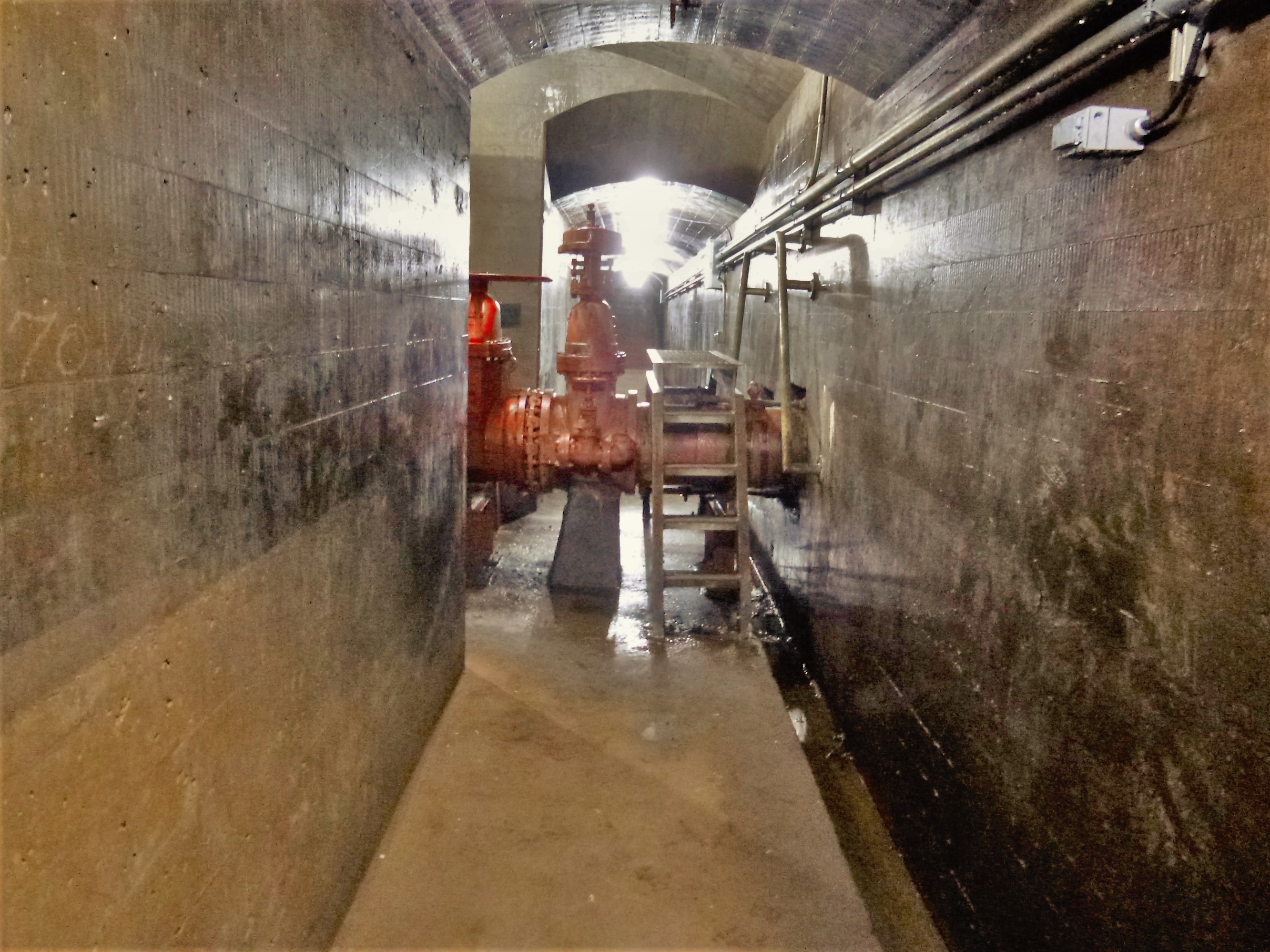 1929 – 1930 – There was a long continued drought this year with occasional spells of unusually hot weather. The lack of rainfall had actually begun in 1929. As of December 31, the Loch Raven Dam was at an elevation of 227.2 feet A.M.T. (Normal is 240’) The typhoid death rate had risen to 3.3 per 100,000. Because the typhoid death rate was rising in most of the eastern states, it was concluded that the prolonged drought was the contributing factor. As a result of the long drought, low flow of the Gunpowder River, and the depletion of the Loch Raven Reservoir, the Water Department decided to reclaim the water used for washing filters. It was estimated that 2,000,000 gallons of water could be saved each day. The water was pumped from the washwater reservoir and pumped into the raw water supply tunnel through the surge tank. (This building is still there, covered in overgrowth, pumps having been removed years ago).