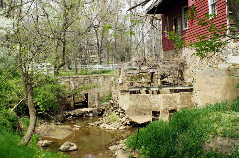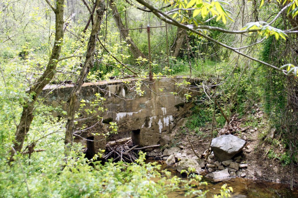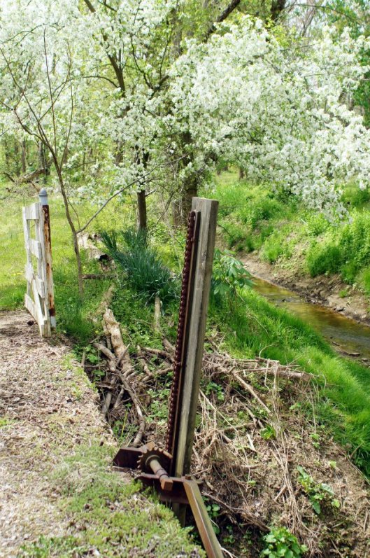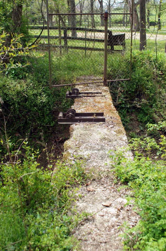 Although there was a lot of silvering, after some work in Photoshop Elements, I was fortunate enough to make them worth saving. Another view downstream. The old 1880s gatehouse in background. Notice the wood pedestal for the valve operator.