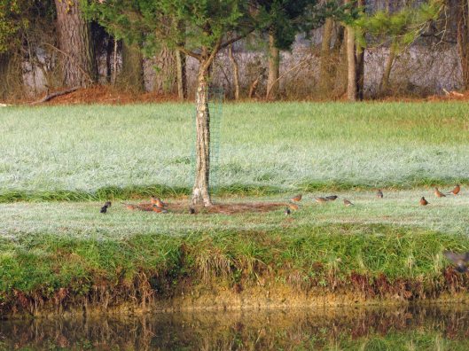 While down at Kathy’s parents, I saw a bunch of birds dive bombing each other over the field. Then one landed on a bird box. I thought it was an Eastern Blue Bird. Turns out it was a Tree Swallow. Not having a tripod, I used the next best thing, which still was not stable enough.