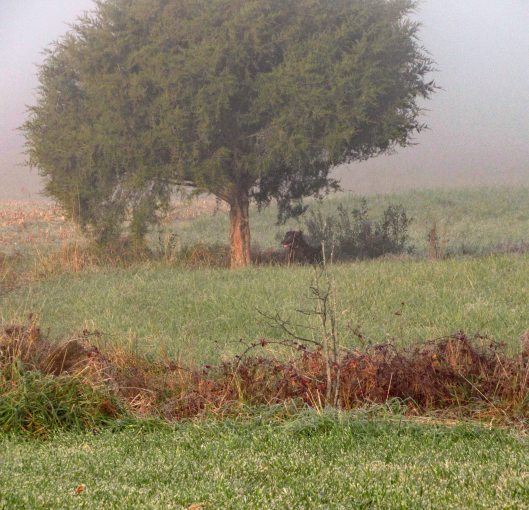 A makeshift steady support – deer fencing around a tree.