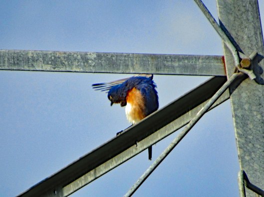 The actual Blue Birds have always been hard for me to get a good shot. They are finicky and don’t sit long in the same spot. This guy was preening himself.