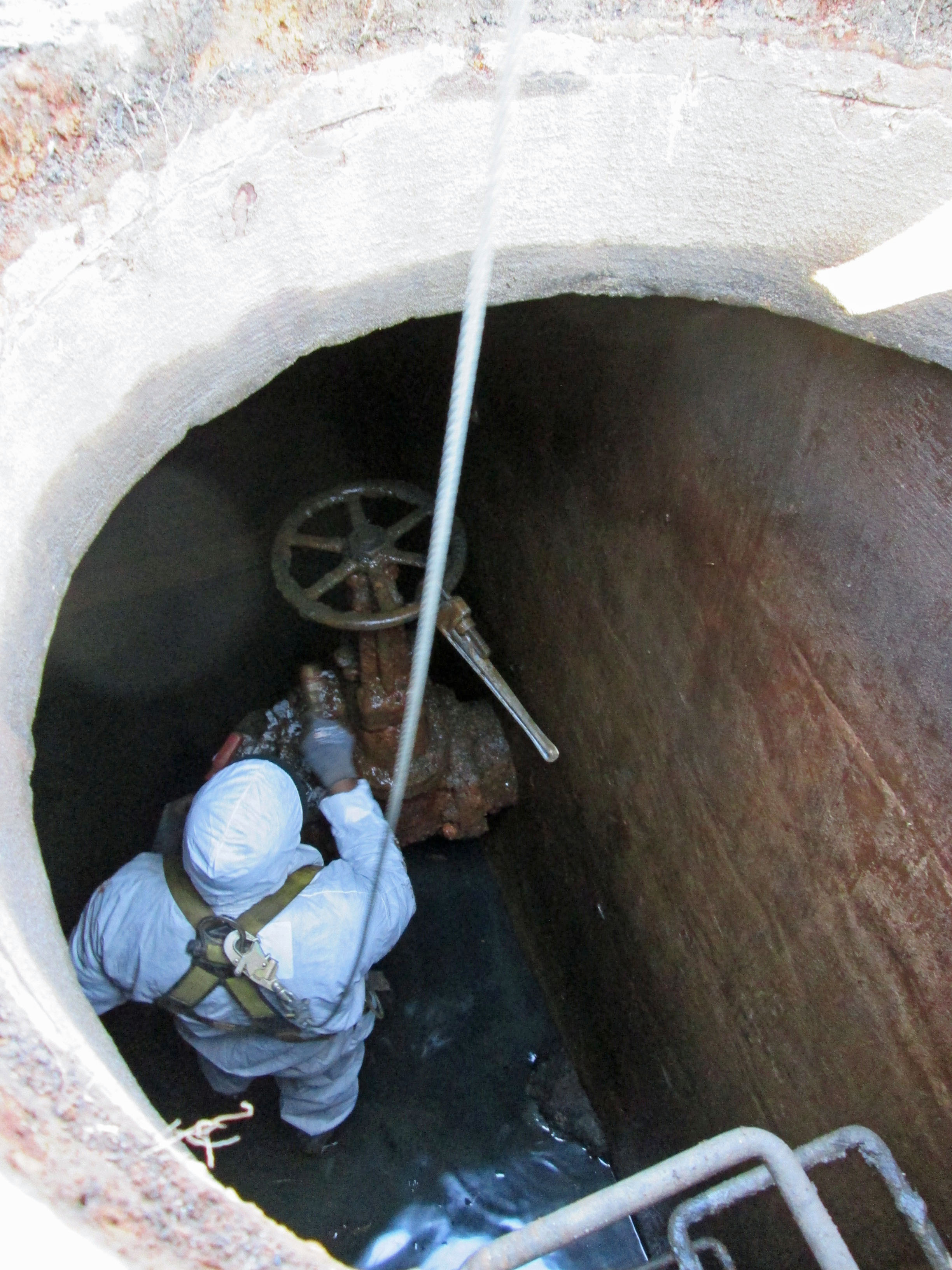 Although there was a lot of silvering, after some work in Photoshop Elements, I was fortunate enough to make them worth saving. Another view downstream. The old 1880s gatehouse in background. Notice the wood pedestal for the valve operator.