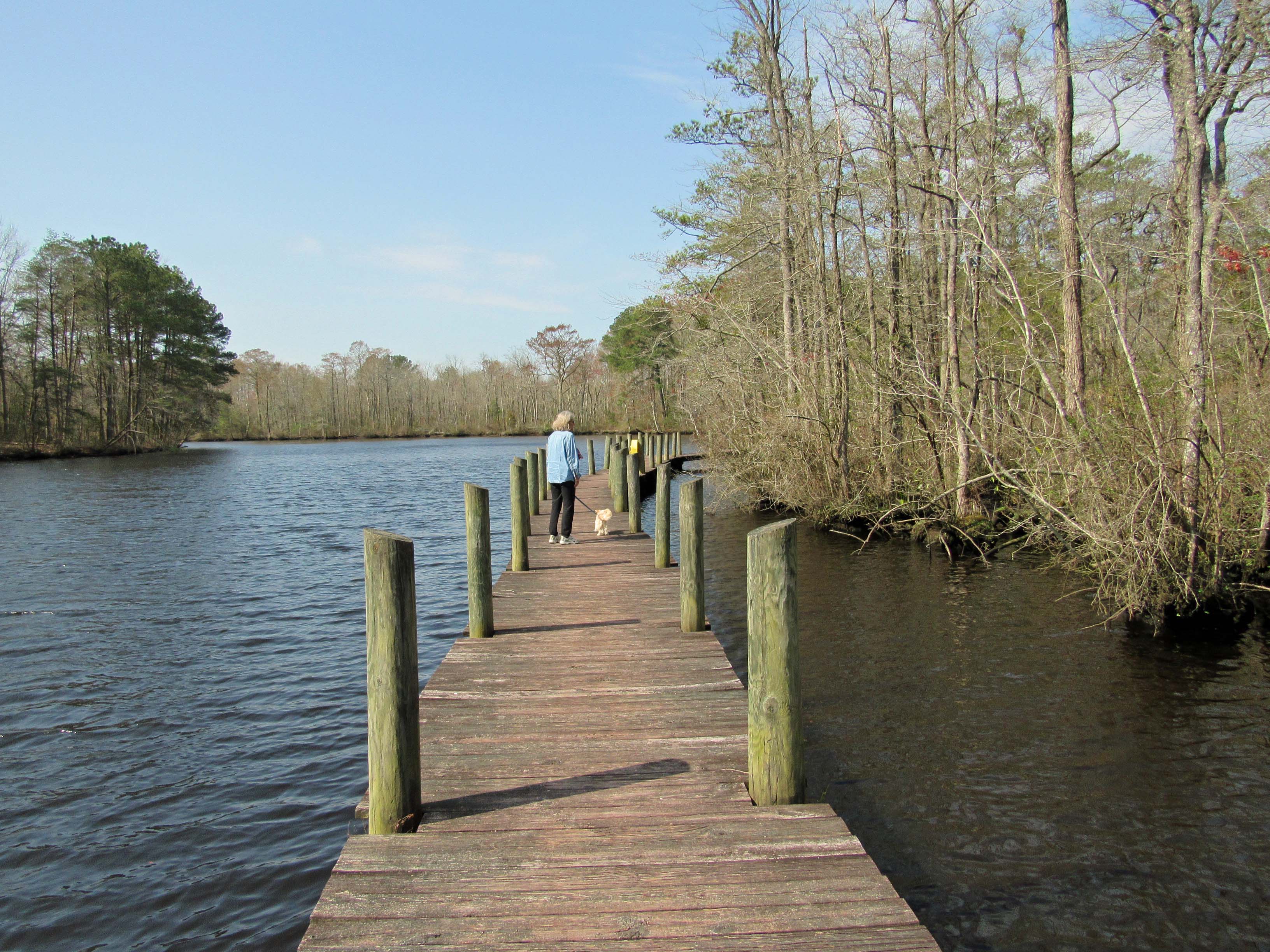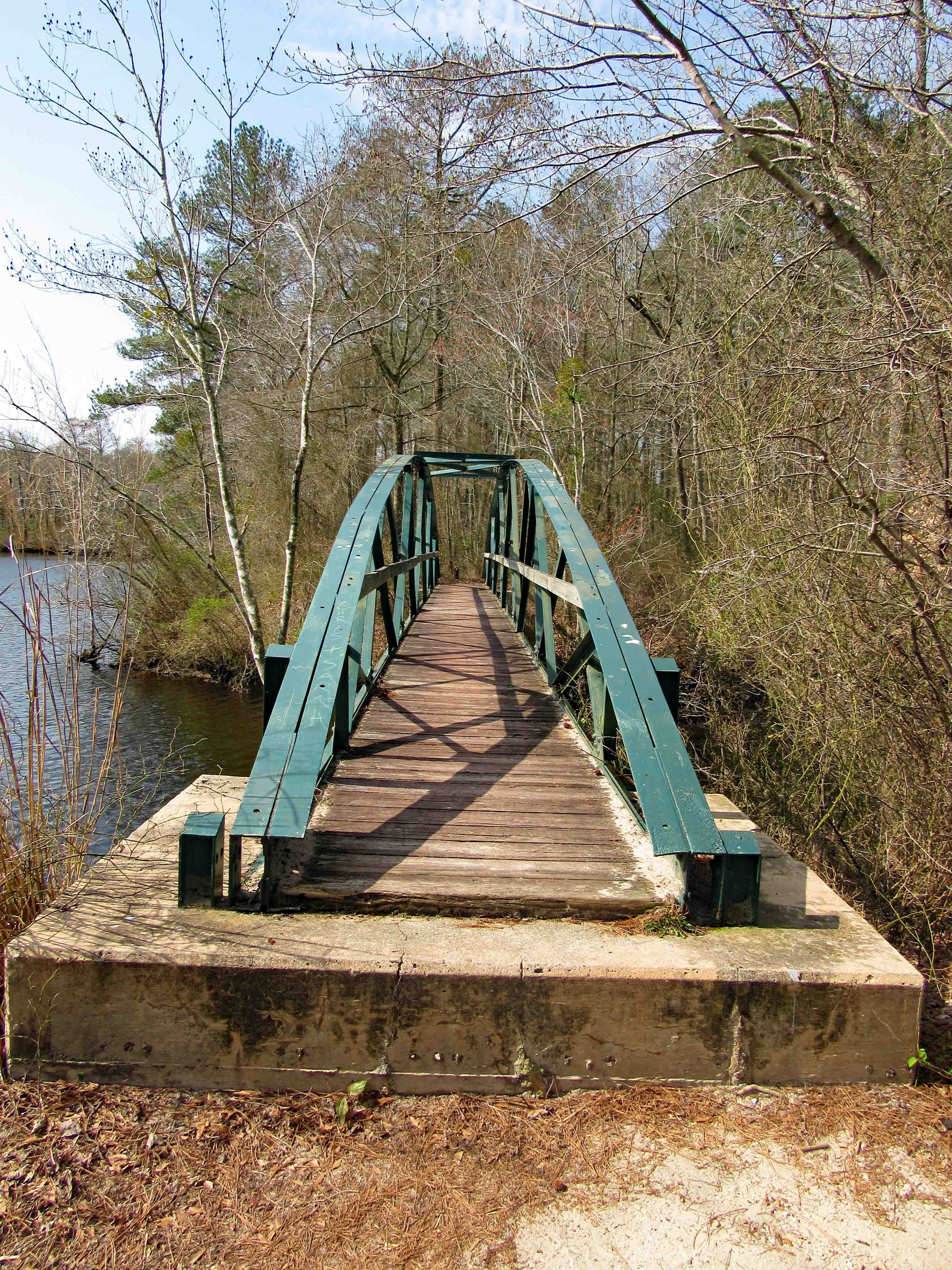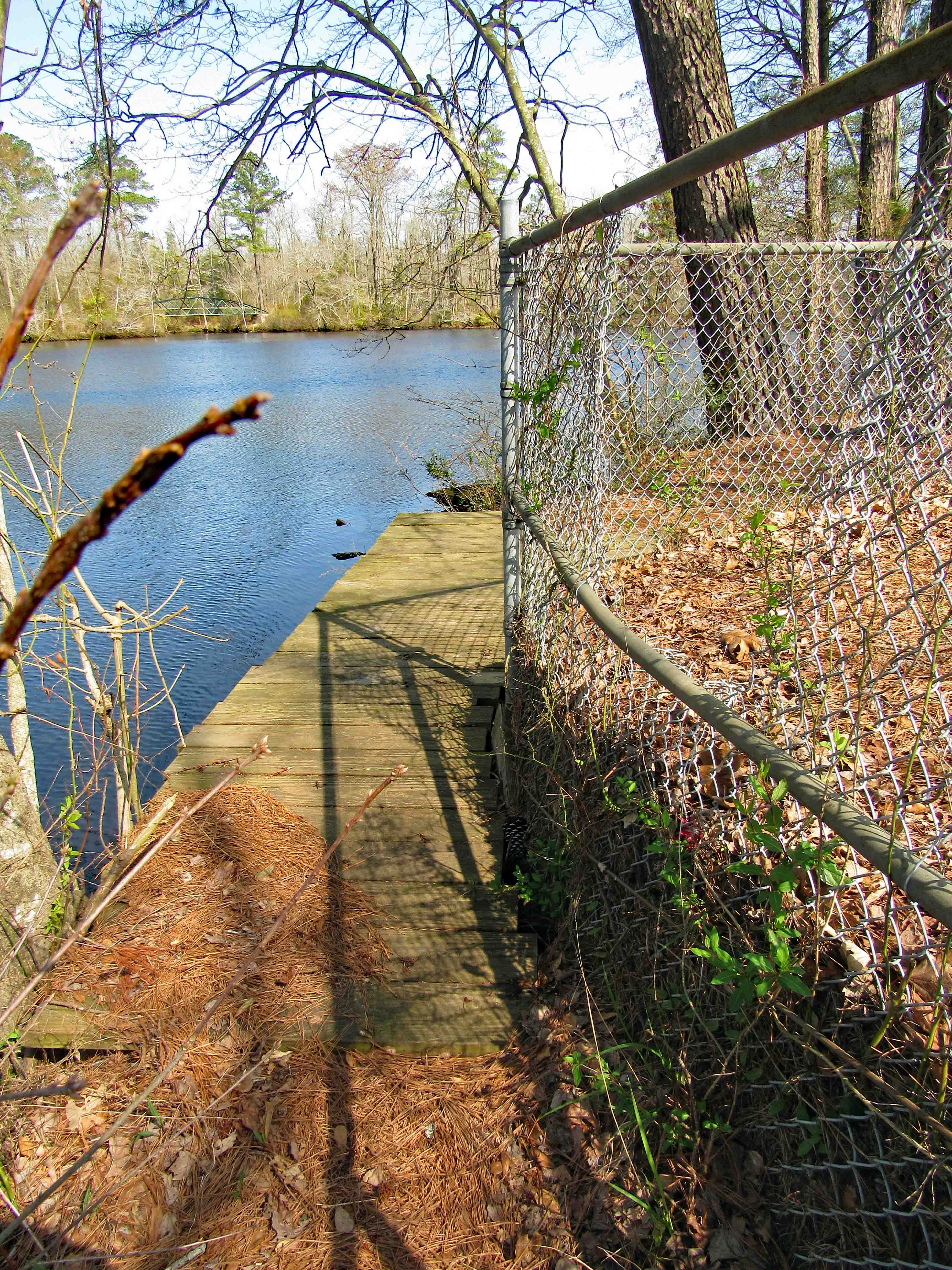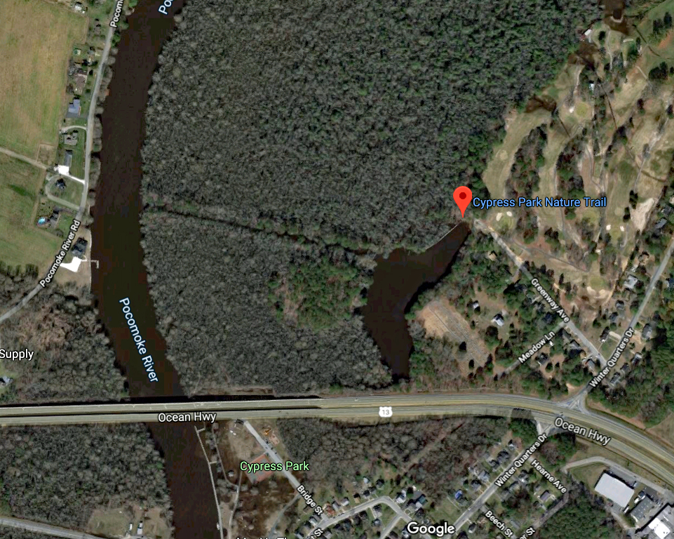 This was a 3.6 mile or a 4.1 mile hike, depending on which map you use, in the Pocomoke State Forest. There is also a Green Trail (4.4 mi) and a Blue Trail (5.2 mi) in the same area. We chose the White Trail because it heads towards a creek – Corkers Creek. The entrance is across Rte. 113, from Shad Landing. Nice empty parking lot.