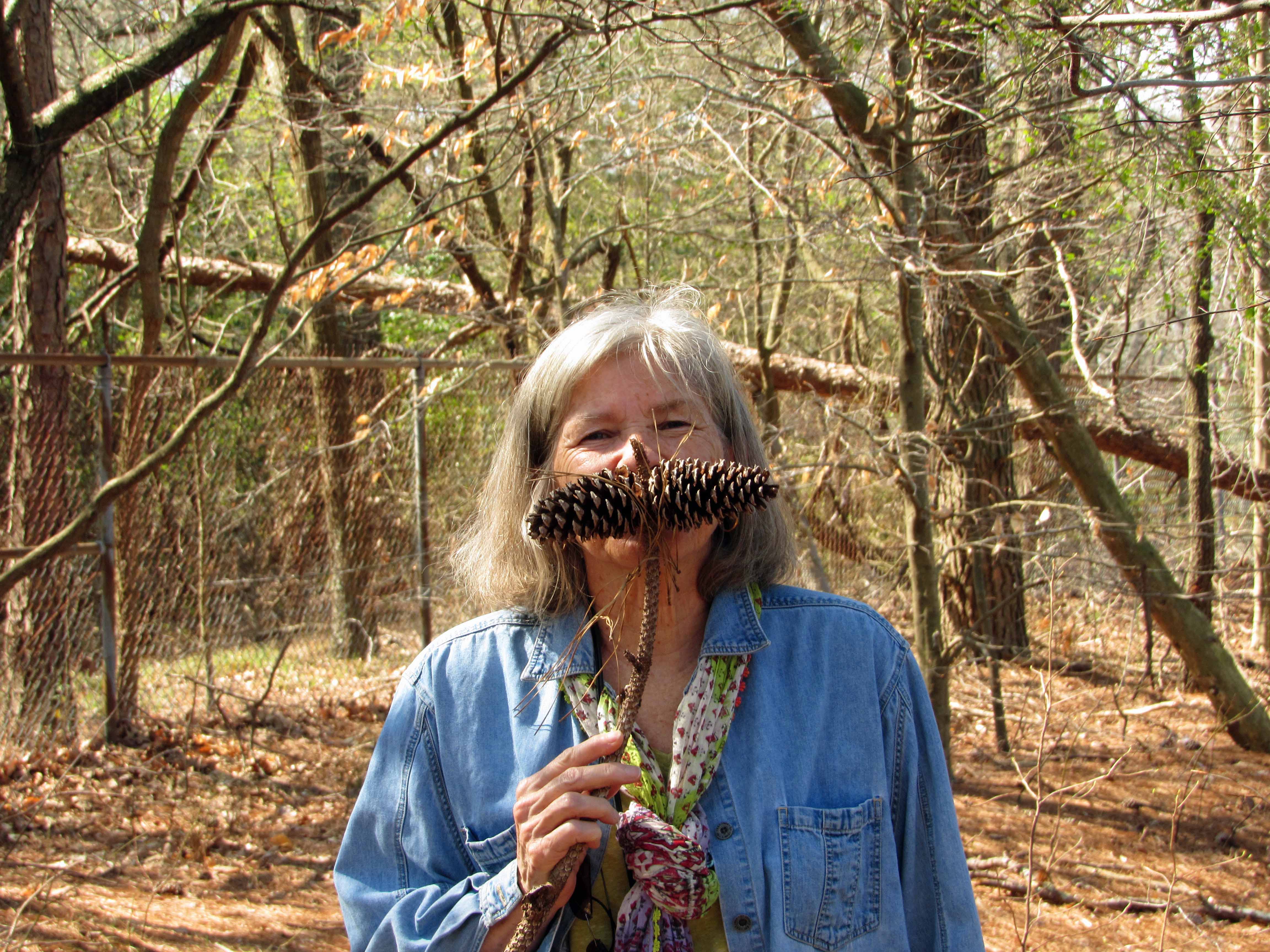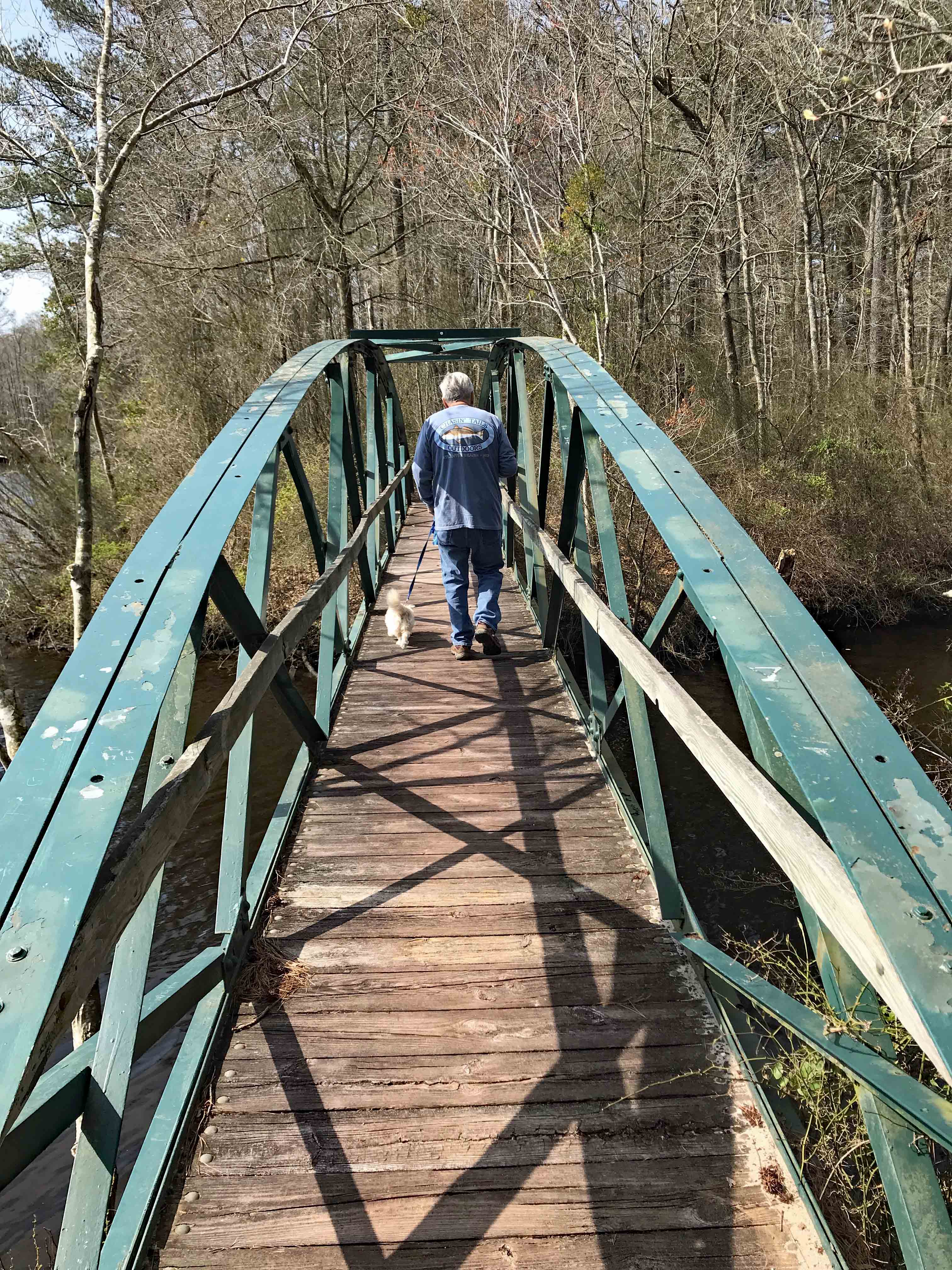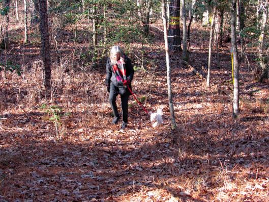 Instead of heading back the way we came, we cut through the woods, but still have to navigate the ditch. I thought Kathy was going to want us to cross the log.
