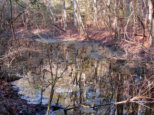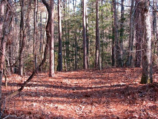 Corkers Creek passes down below and across the way we see another mound. (Wondering if at one time a bridge crossed here?) One of our maps says Colburn Trail is over there.