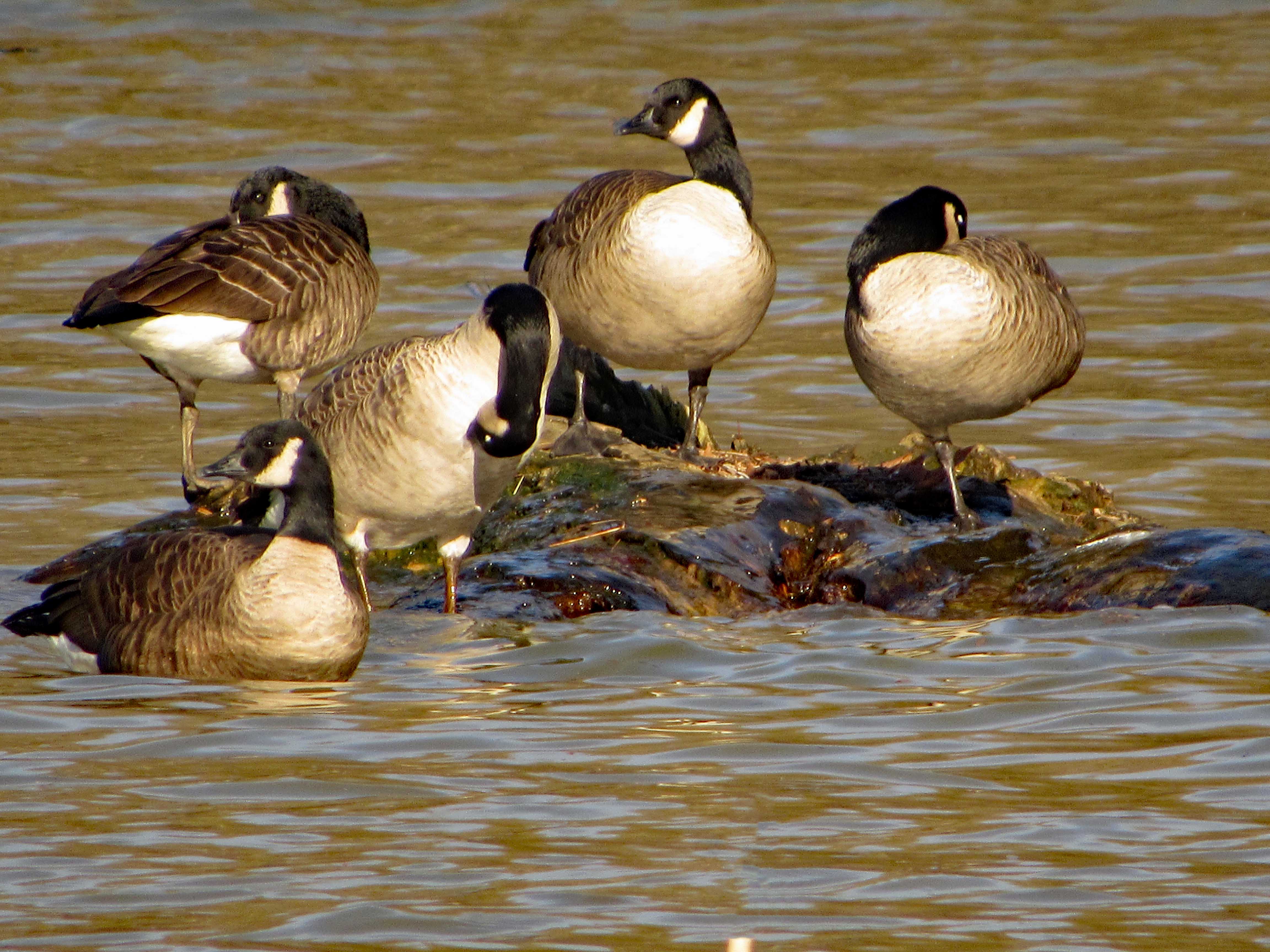 The geese, hanging on a rock.