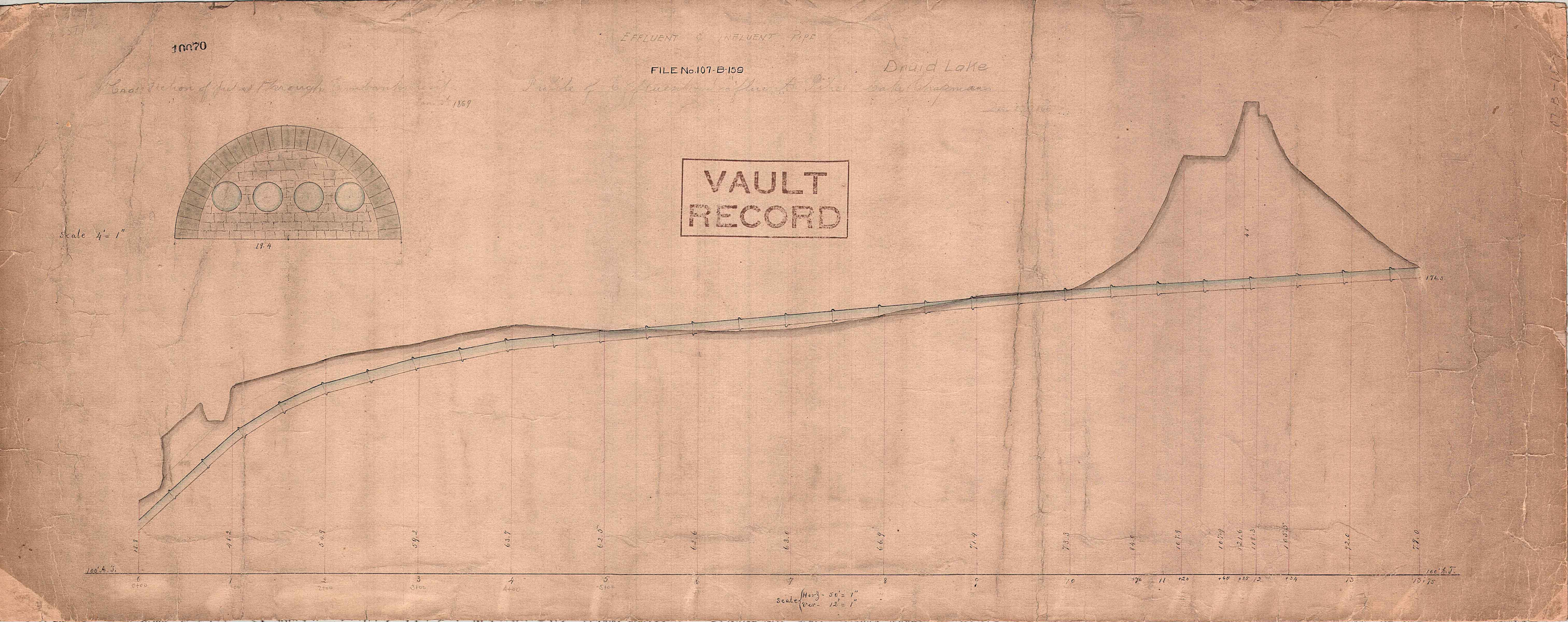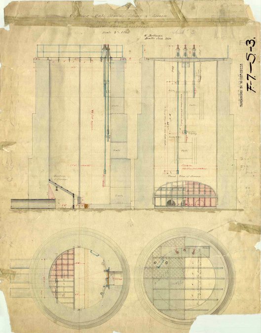 Returning to the Tiffany Reservoir map, a couple things of interest: On the Tiffany map you can see it says Tiffany Conduit connected to Tiffany T (tunnel) then to Herring Run Conduit. Looking close you can see that there are two colorings of this conduit; the first and third sections being blue. The middle section (Tiffany T) is black. All the black sections in this conduit are underground. All the blue ones are open channels. I believe this is where the term ‘Air-lined Tunnel’ came from? That there was not enough head pressure to completely fill the underground portions. Following the tunnel north. The Herring Run Conduit becomes the Sater’s Ridge Tunnel.