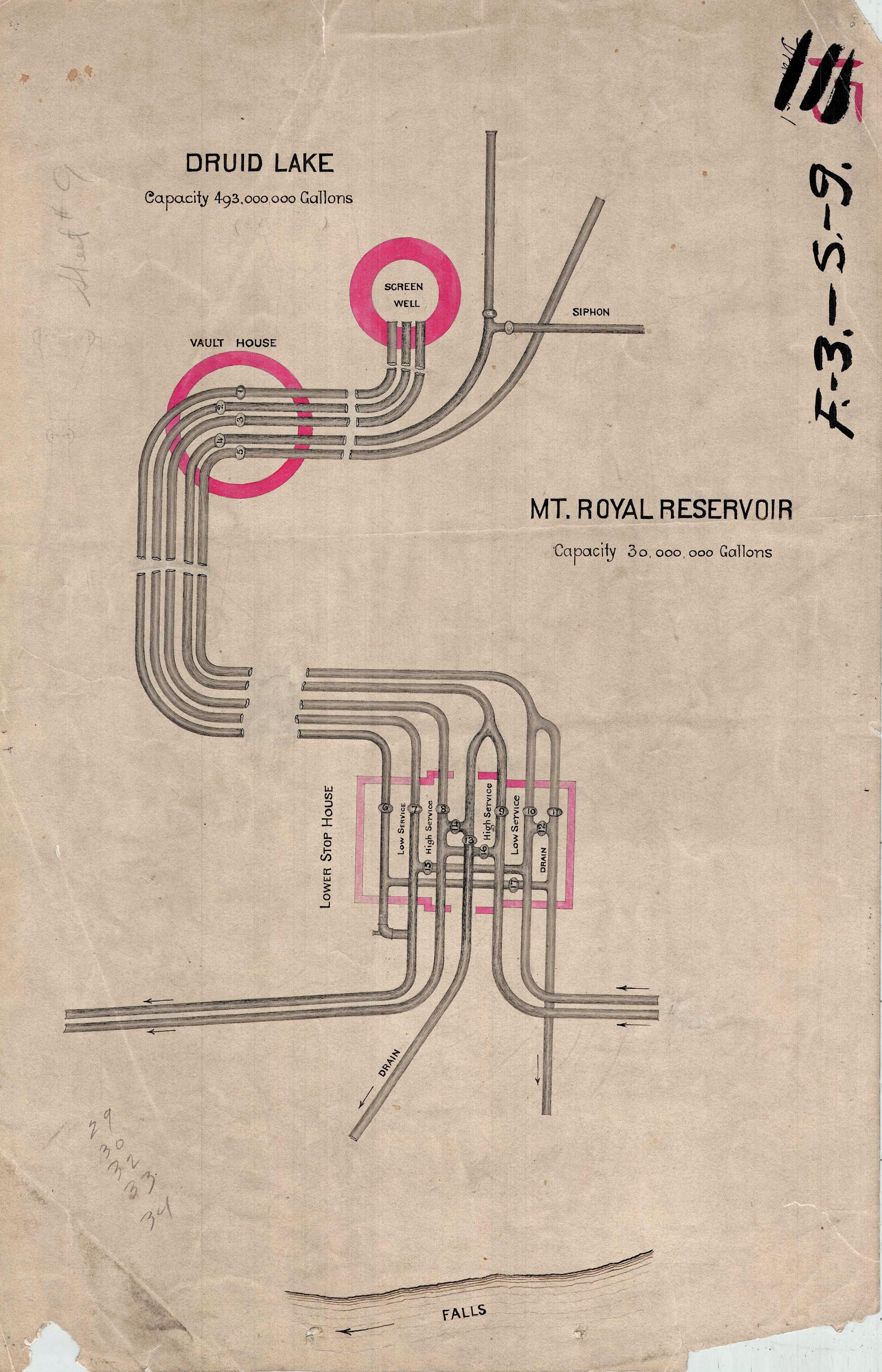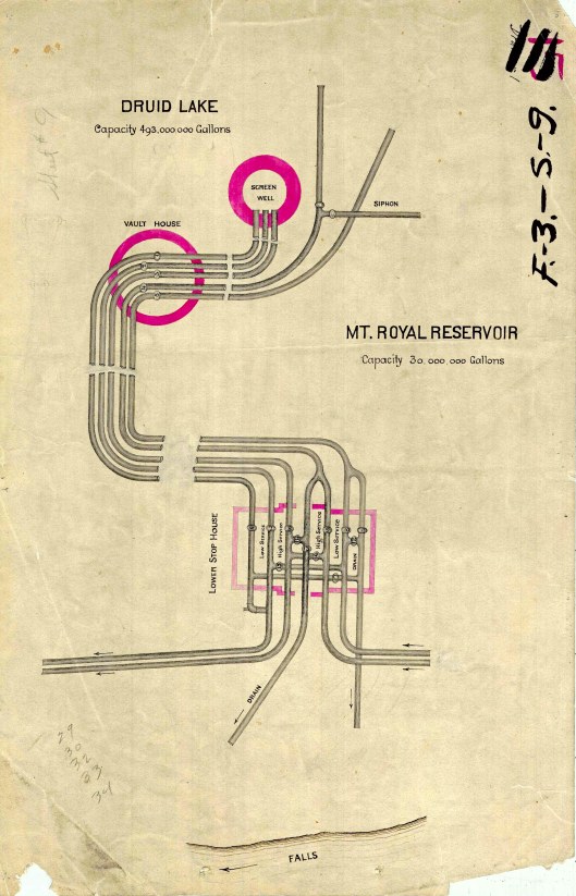 The Hampden (Noted as Hampton on map) and Mt. Royal Reservoirs.