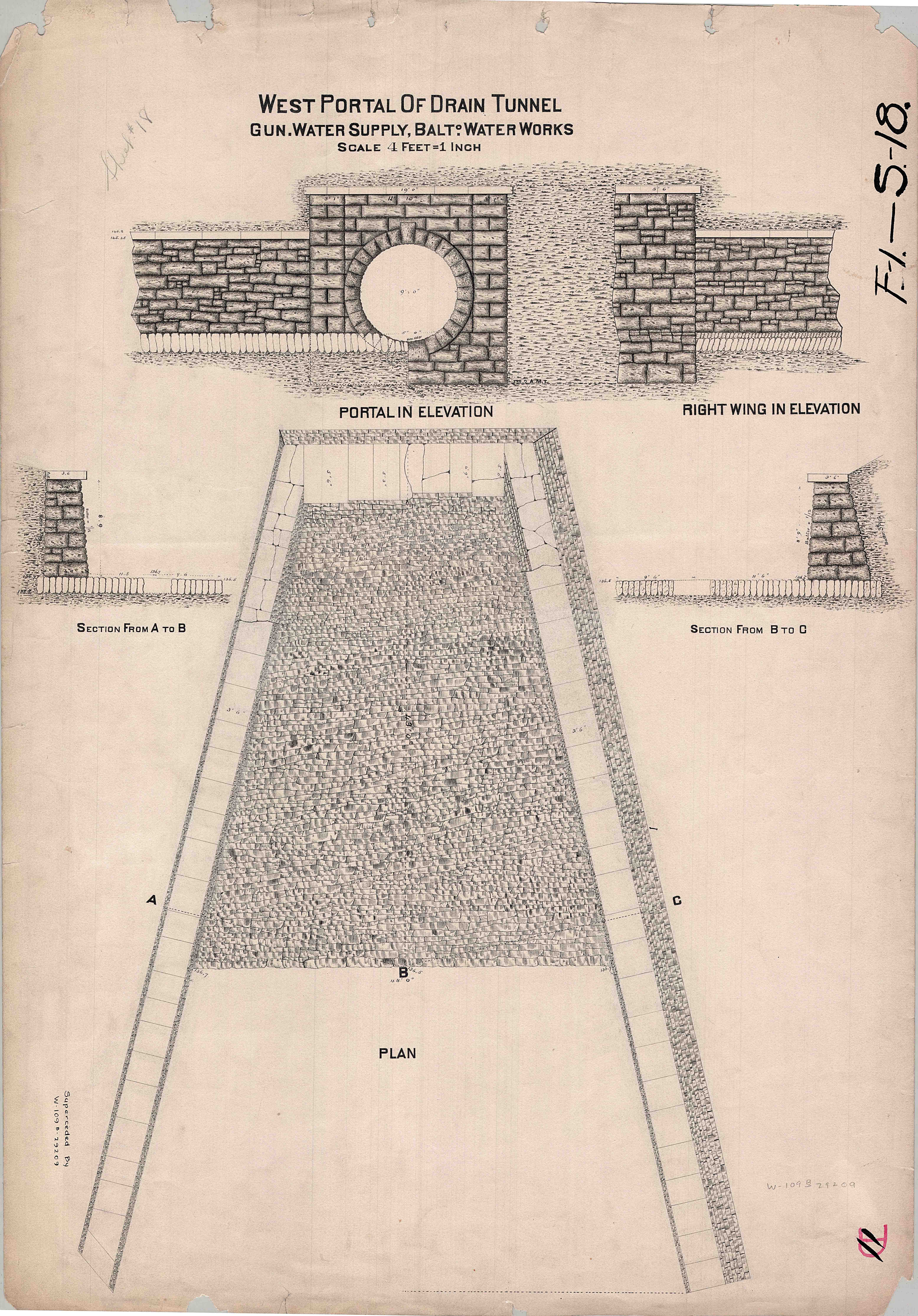 Baltimore, bricks, engineering, Gunpowder Falls, HISTORY, Lake Montebello, Montebello, Public Works, Tunneling, water history