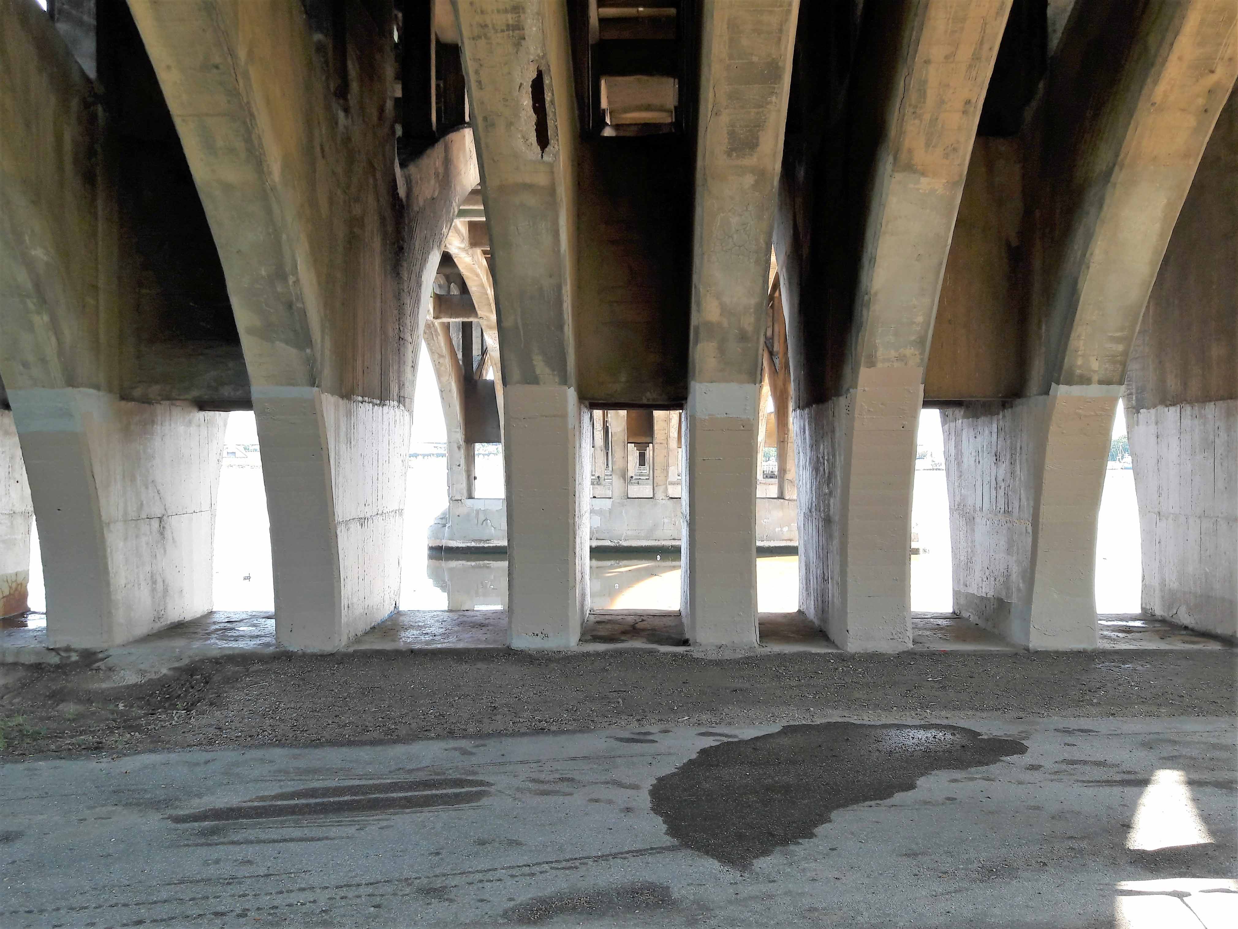 A preacher preaching under the overpass.