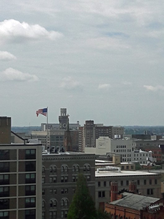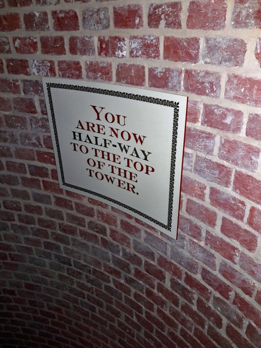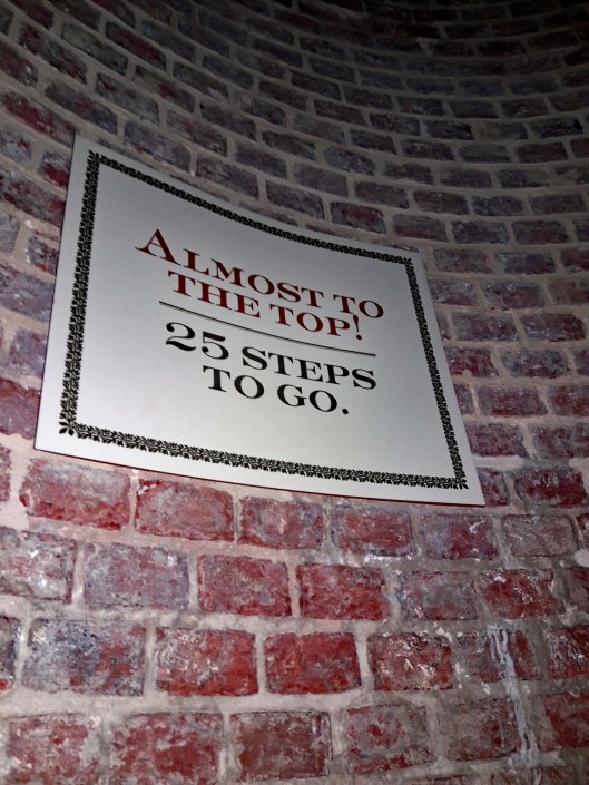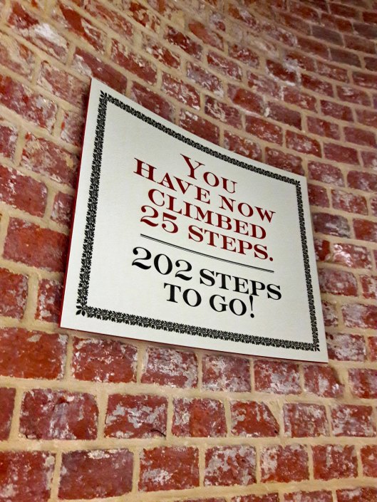 Yes! The steps are open! $6 is a small price to pay, to be able to go to the top! And I am off! (Kathy did not want to go, but she said she would take a photo of me looking out the window)