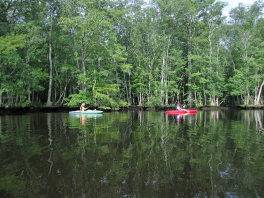 Early kayak adventure – it has been hot out so we got an early start! Kathy’s sister Gail was up from North Carolina so off we went to Snow Hill and a trip down the Pocomoke, around Goat Island. It was about 3 and 1/3 mile round trip.