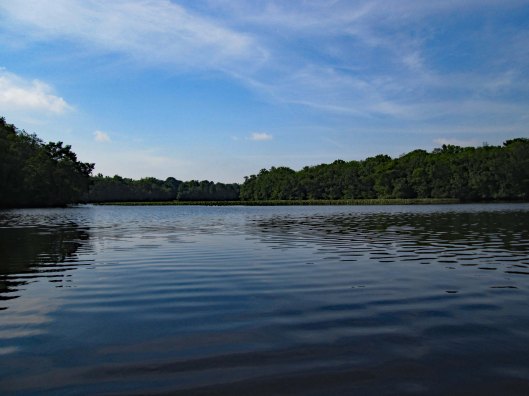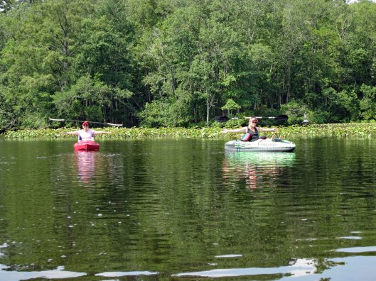 Lots of lily pads floating about. Tried to avoid and paddle around.