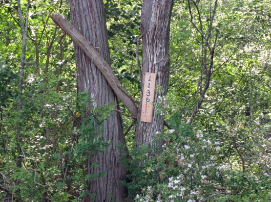 For whatever reason, All Trails stopped recording our trip so I used their default map, adding an extra red line at the bottom left of the trail because we walked the road back. Not much parking. You need to park on the grass along the road. The guy that lives in the house to the left of the entrance trail was cutting the grass. He does a good job maintaining it. It is turkey hunting season and he wanted to know if we seen any? Glad this property belongs to the Nature Conservancy – No Hunting! I hate ducking bullets!