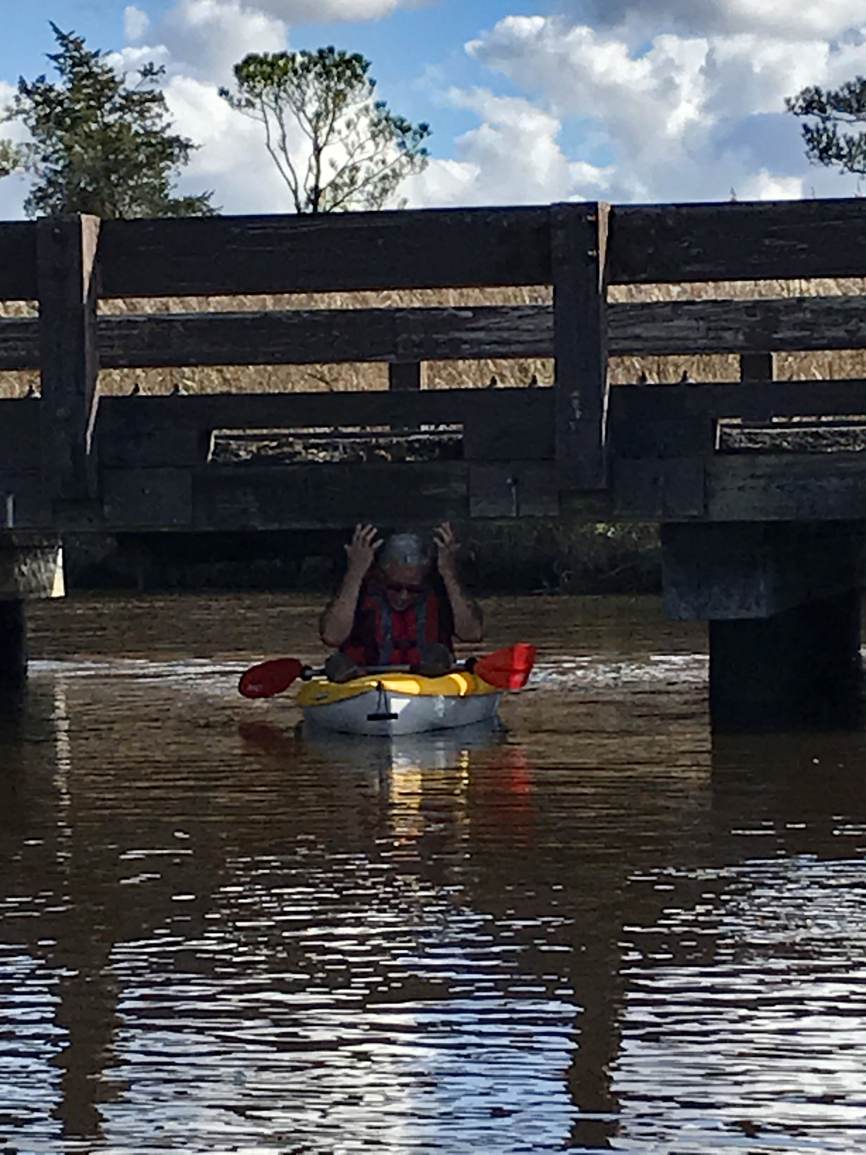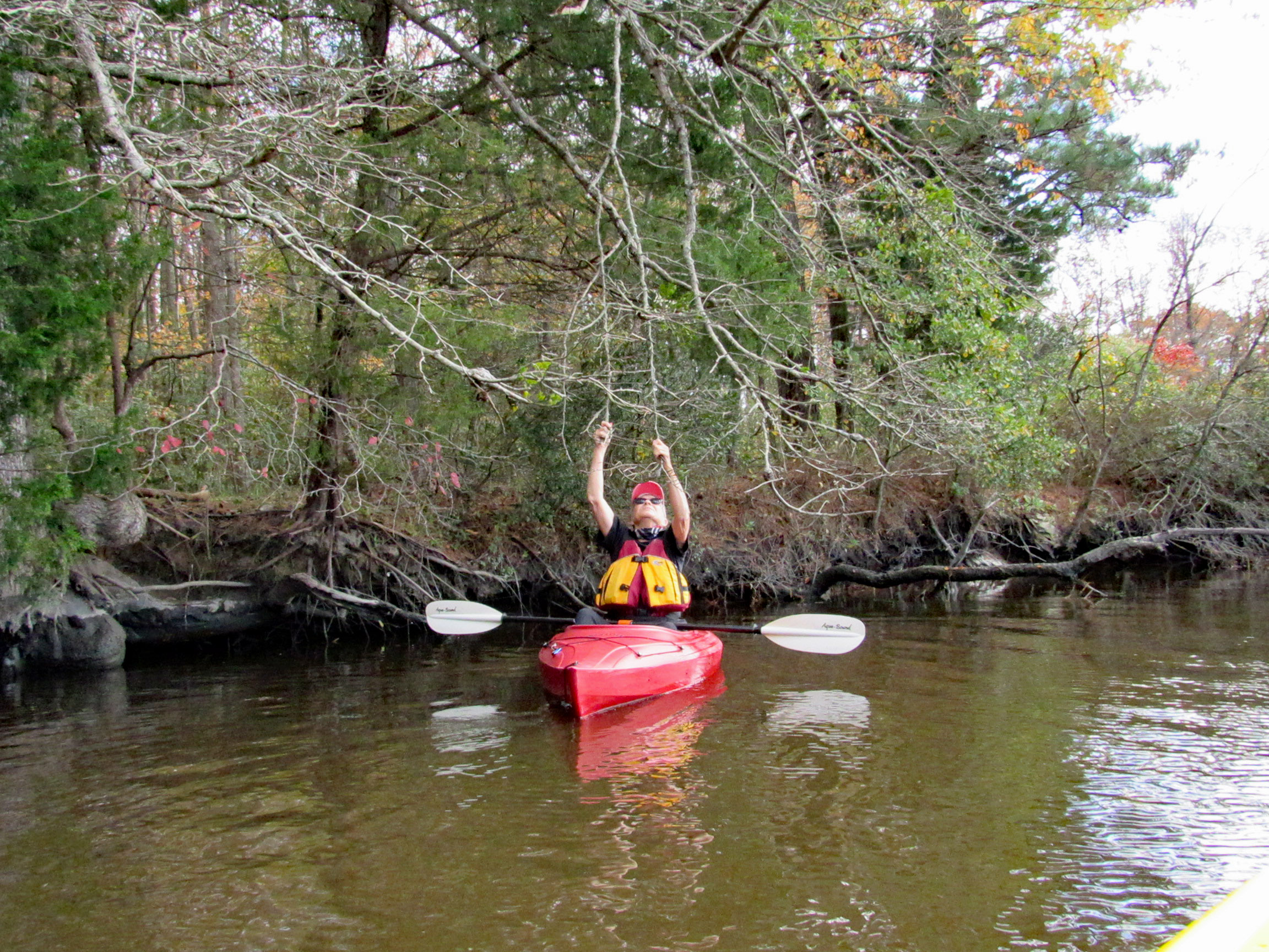So, i’m all the way down by the duck blind, about a quarter mile away from Kathy and Gail when I hear a whistle. So I paddle back as fast as I can to see if anything is wrong – “No, we just wanted you to see us balance the paddles on our heads!” Ha!!!