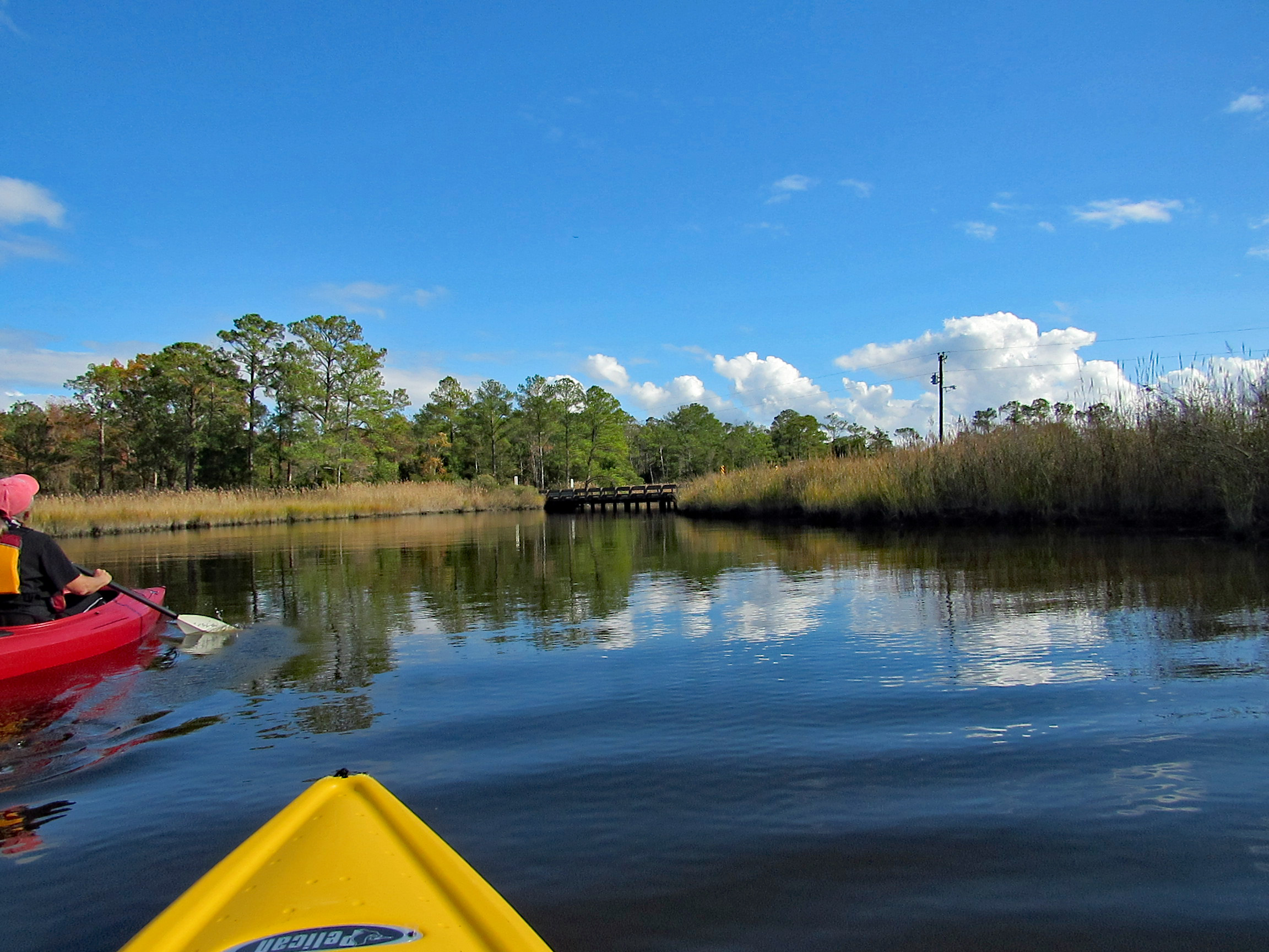 From the map you can see that it is pretty flat and a lot of marsh area. A nice trail though. We may bring our kayaks here one day. There is a boat ramp to the right, a few hundred feet over.