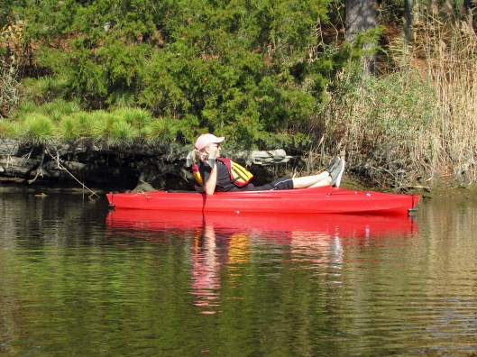 It was a really nice morning to go kayaking. Except for one little incident that happened – some jerk in a power boat was going too fast and about over-shot the curve. I was able to get out of his way but he was crazy and called us F’ing idiots!! I waved and told him to have a great day! I believe we had the right of way.