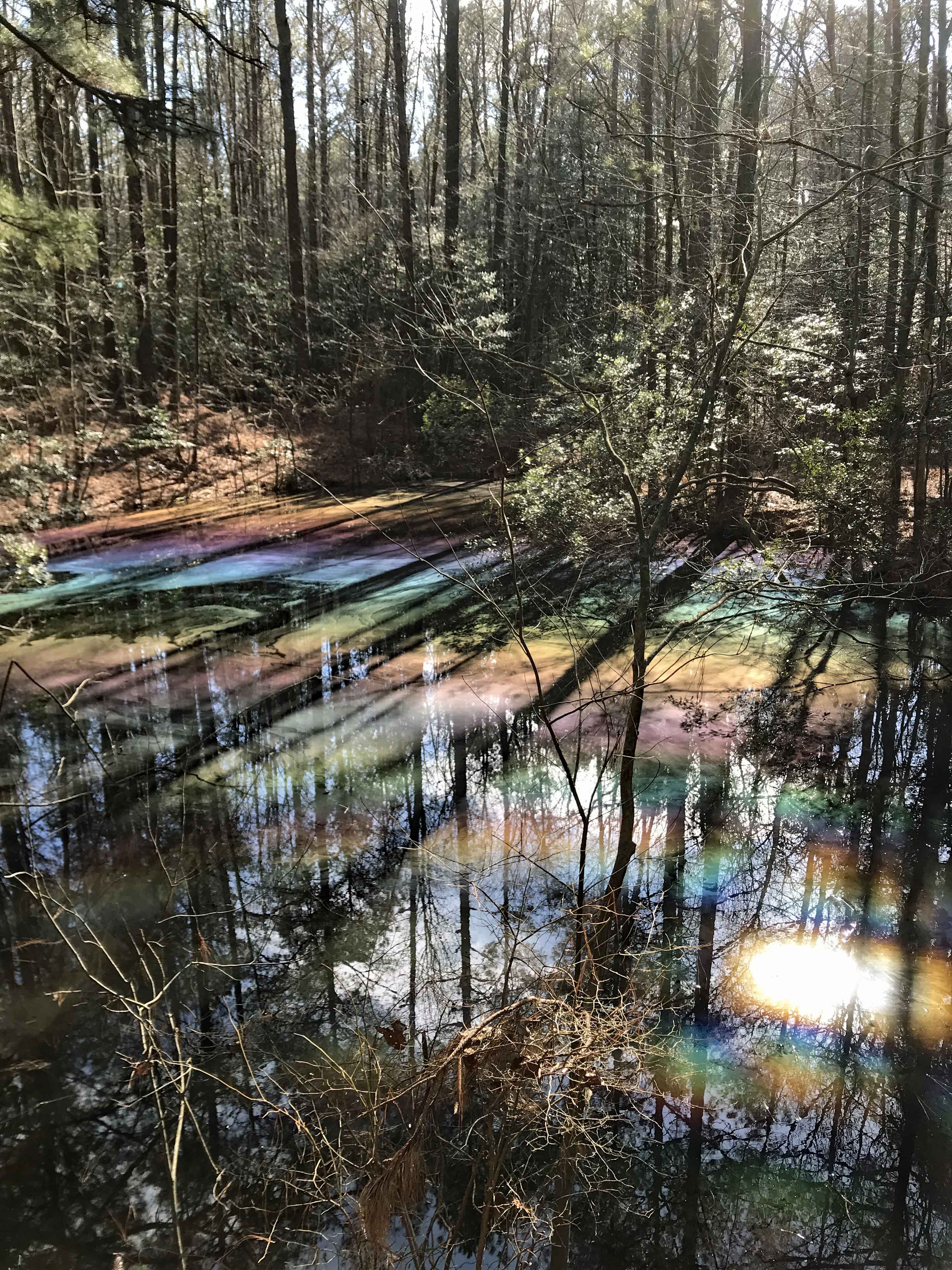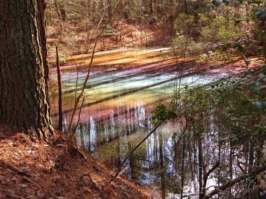 Hike towards Mine Bank Run. Can still tell this run continues to overflow it’s banks. Stopped to check out what I call the Bubbling Pond. They call it Marble Spring. It bubbles up from lime underground mixing with the water. Not much bubbling today.