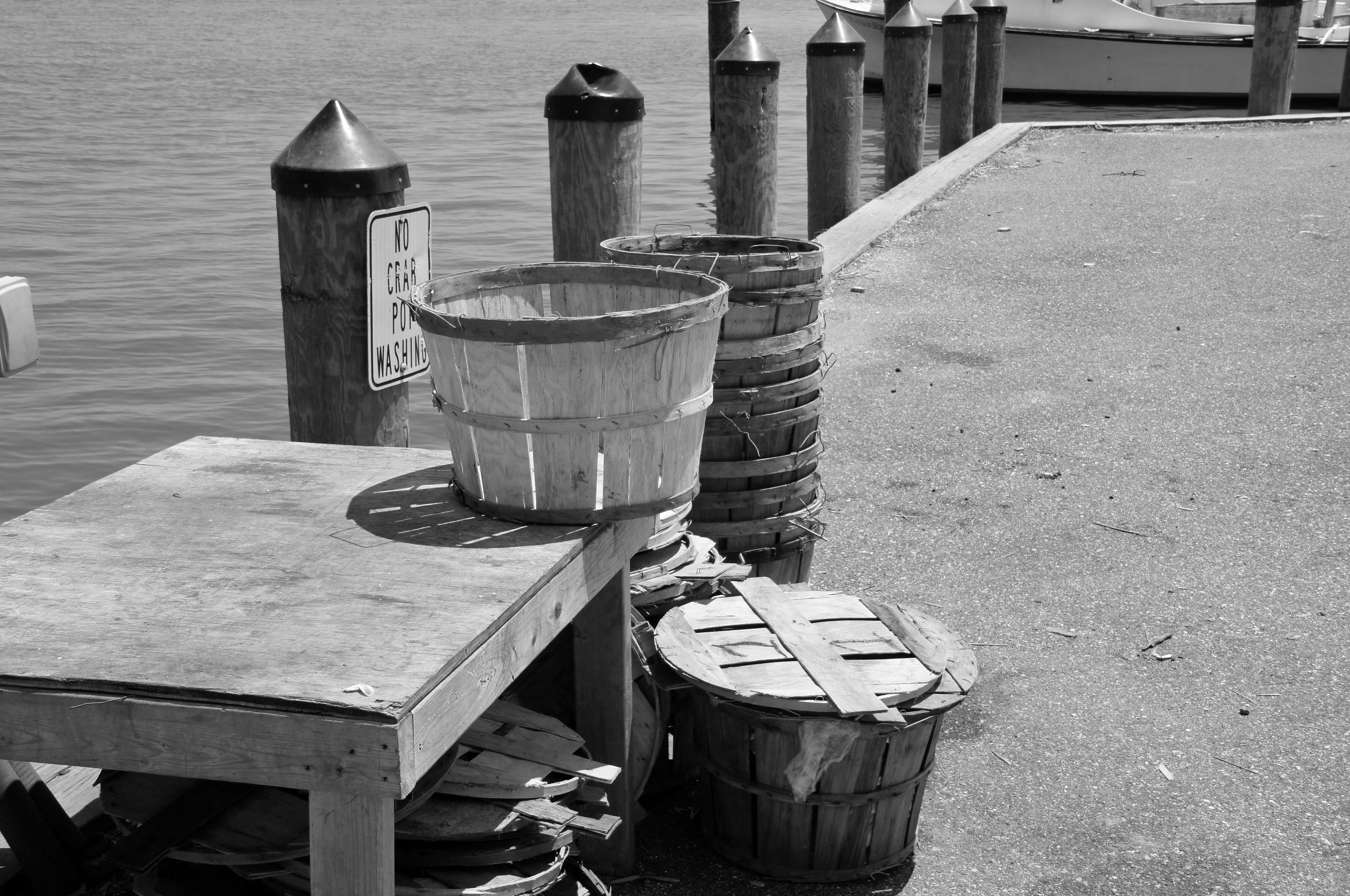 Not too much further to the end. Another marina of sorts. Crab bushels waiting.