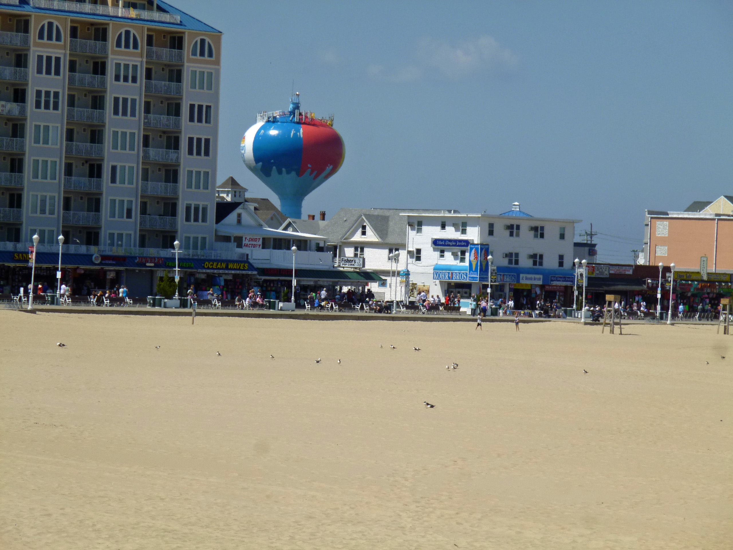 After some roaming around the fest for a while, we headed to the beach. That water tower made the front page of the local paper. It was just painted and is now peeling. Probably another low-bid contract.