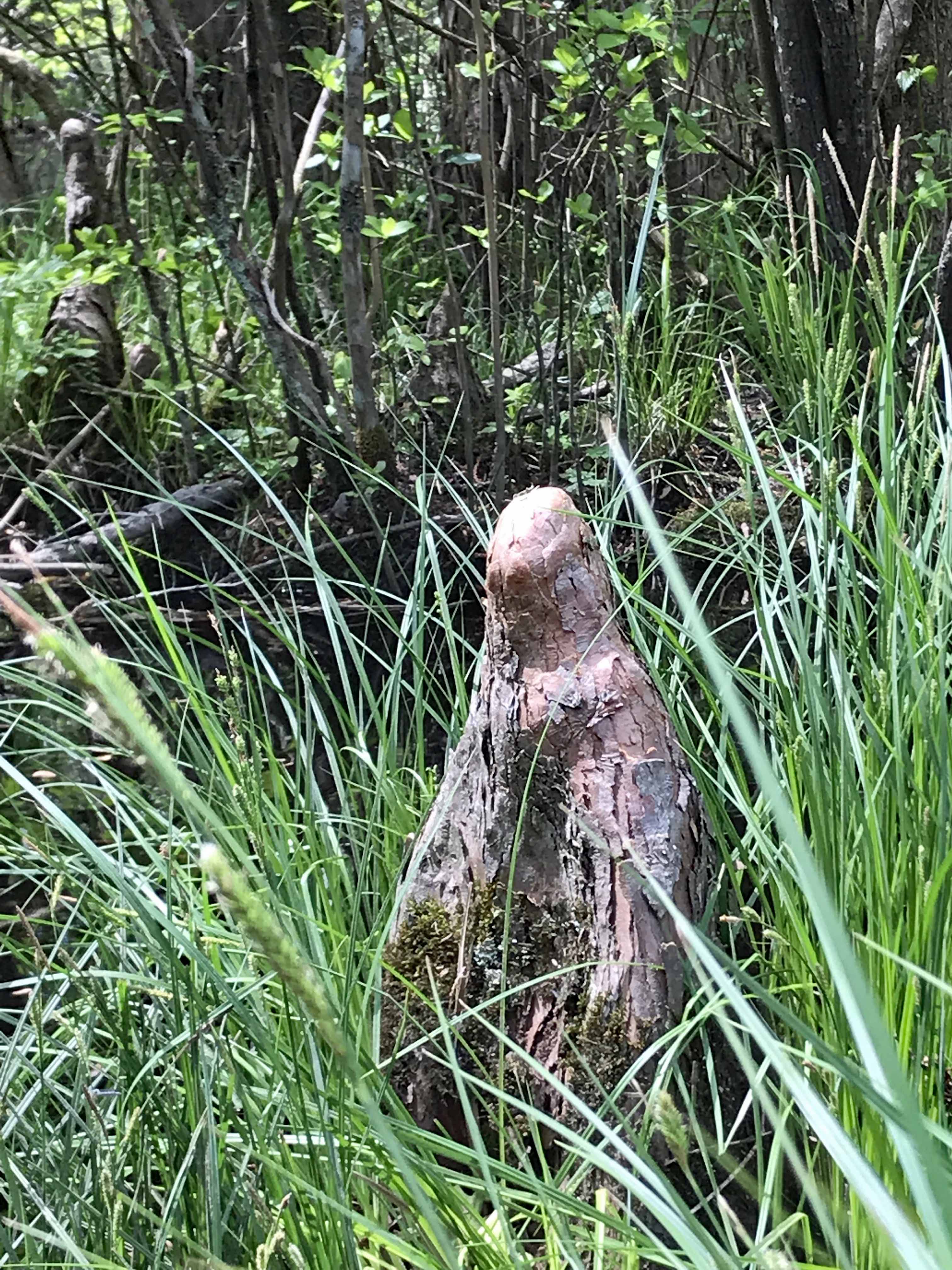 We did not see much wildlife, just some signs. Here it looks like a beaver wasn’t paying attention to what had already been gnawed upon.