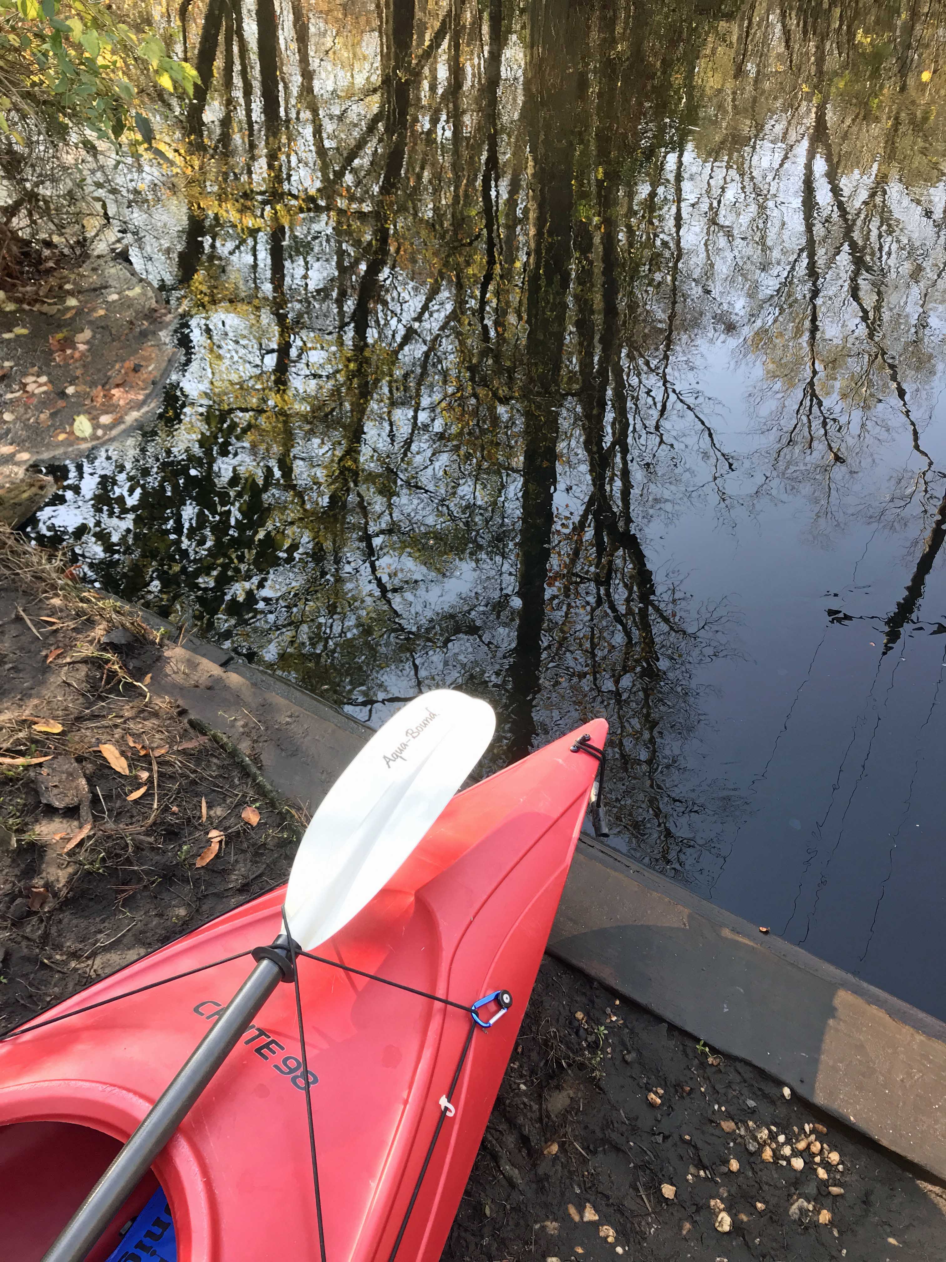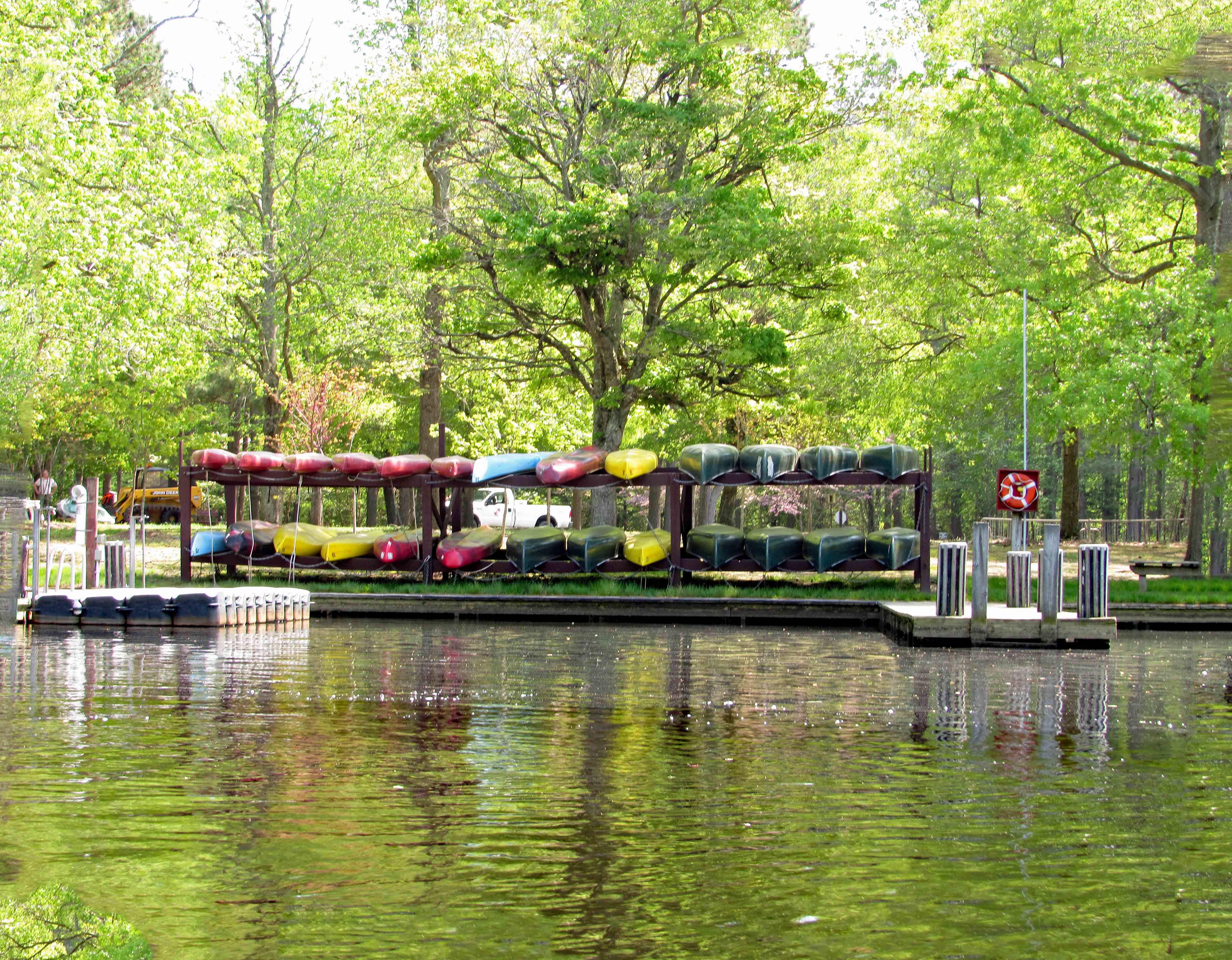 From the launch you paddle east, go around the pier and then head southwest. Pass by the lonely canoes on a rack, waiting for adventurers.